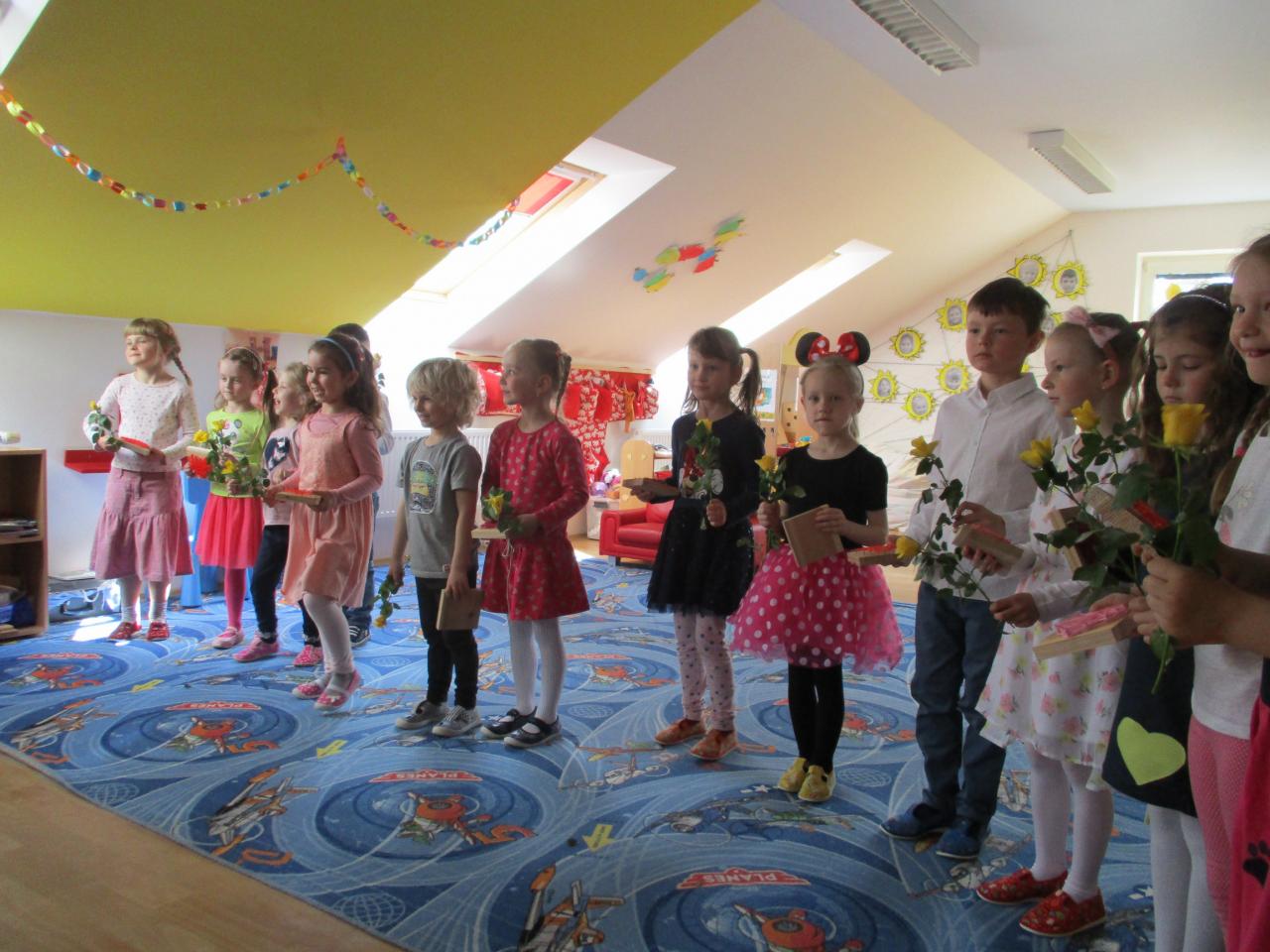 Ve čtvrtek 5. 5. 2022 jsme uvítali rodiče na besídce ke Dni matek. Děti si připravily vystoupení s básničkami, tancem, písničkami a hrou na hudební trubky. Na závěr předaly svým maminkám kytičku a vlastnoručně vyrobené srdíčko. Během celého týdne jsme se věnovali tématu - Maminky mají svátek.