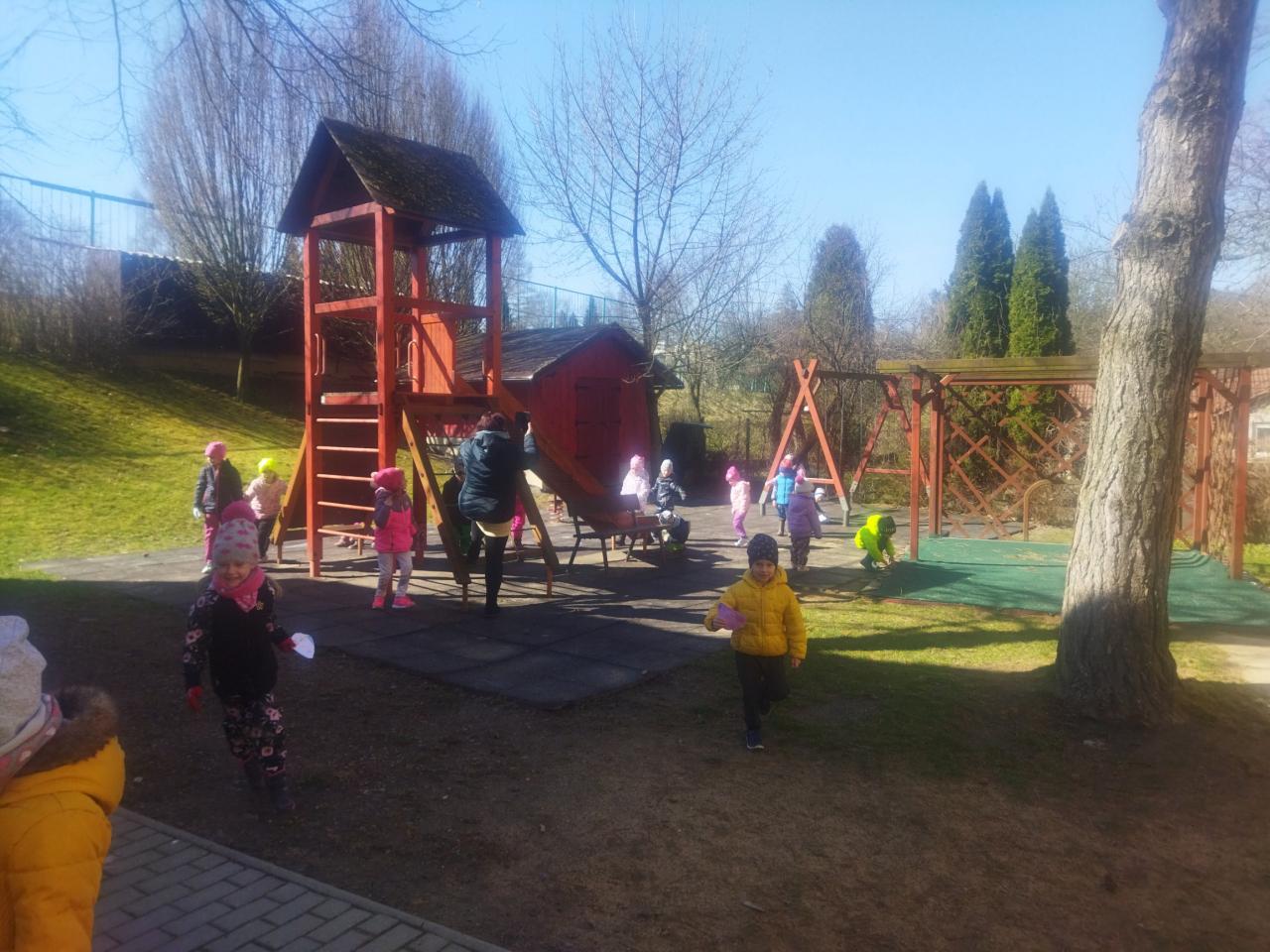 Pašijový týden přinesl i barevné dny. Pondělí bylo modré, úterý žluté, středa šedá (škaredá) a zelený čtvrtek. Děti se seznámily se zvyky, které se k tomuto týdnu vážou a obě třídy hledaly ,,VELIKONOČNÍ VAJÍČKA", za nalezení získaly odměnu :-)