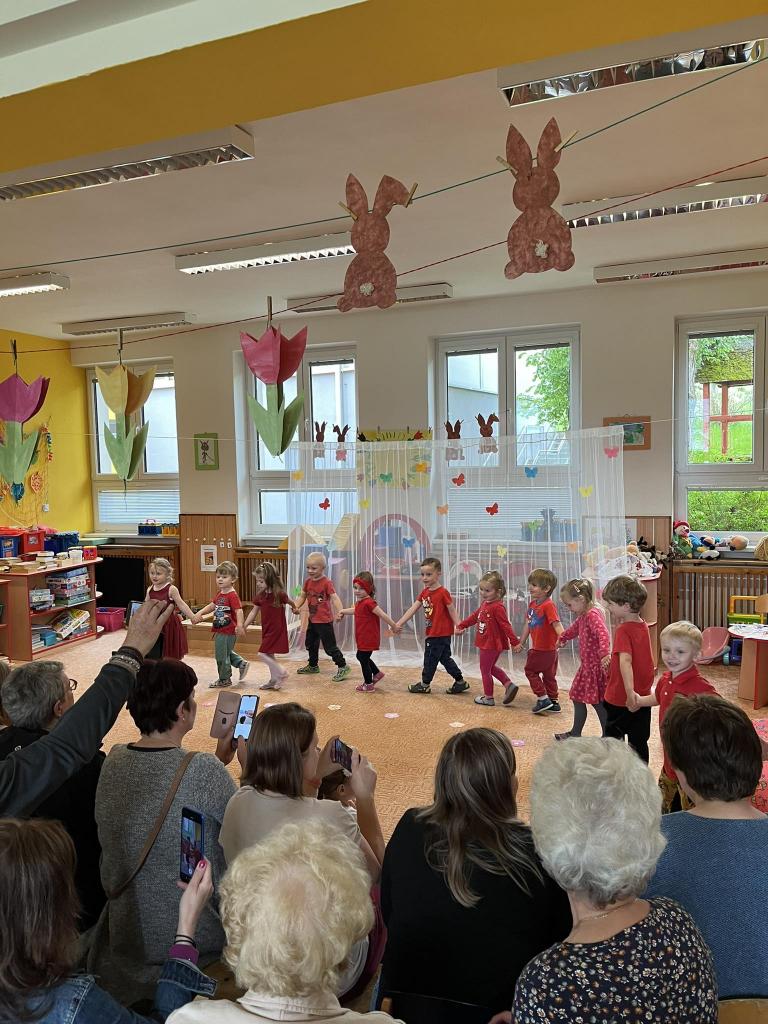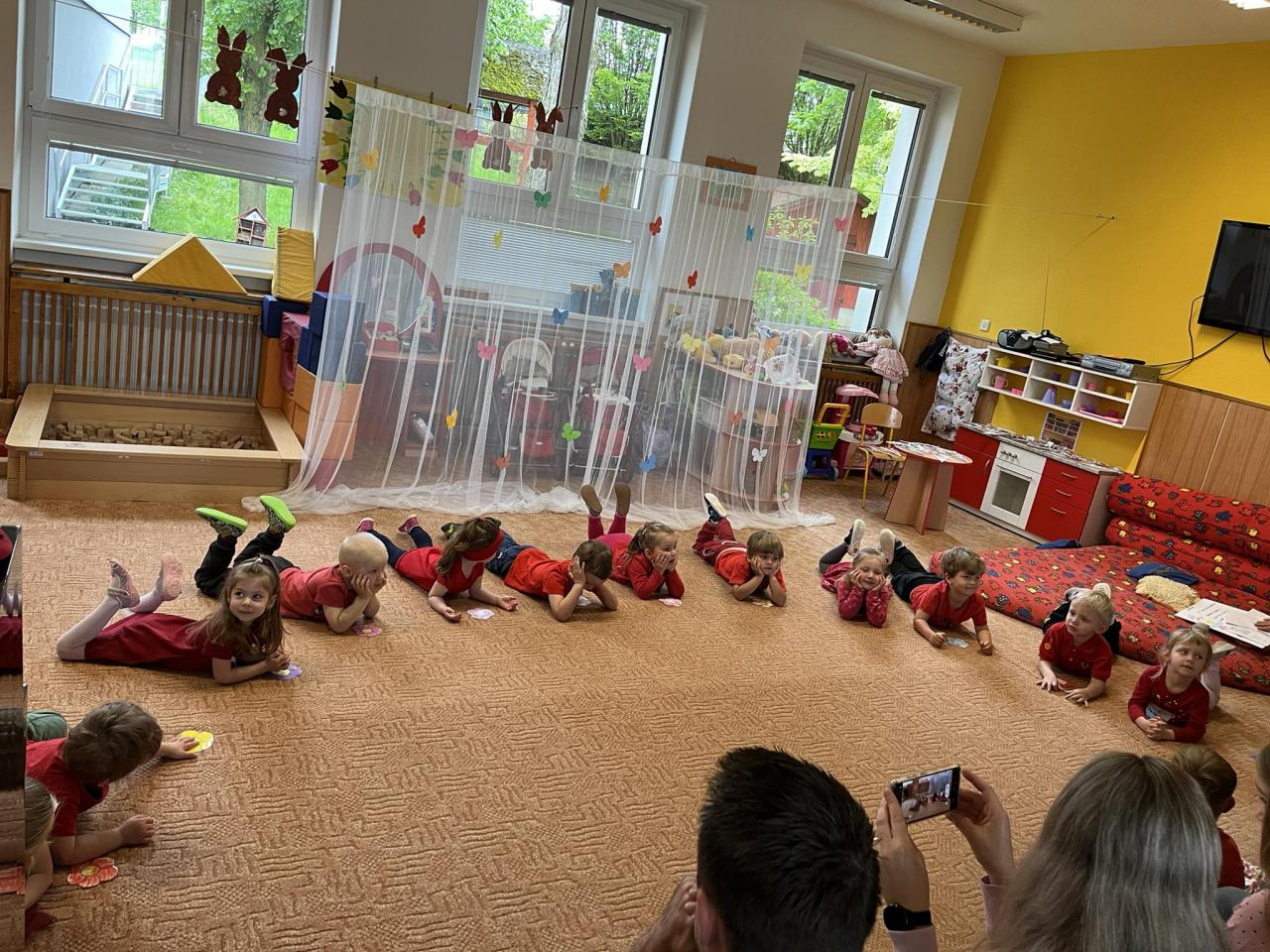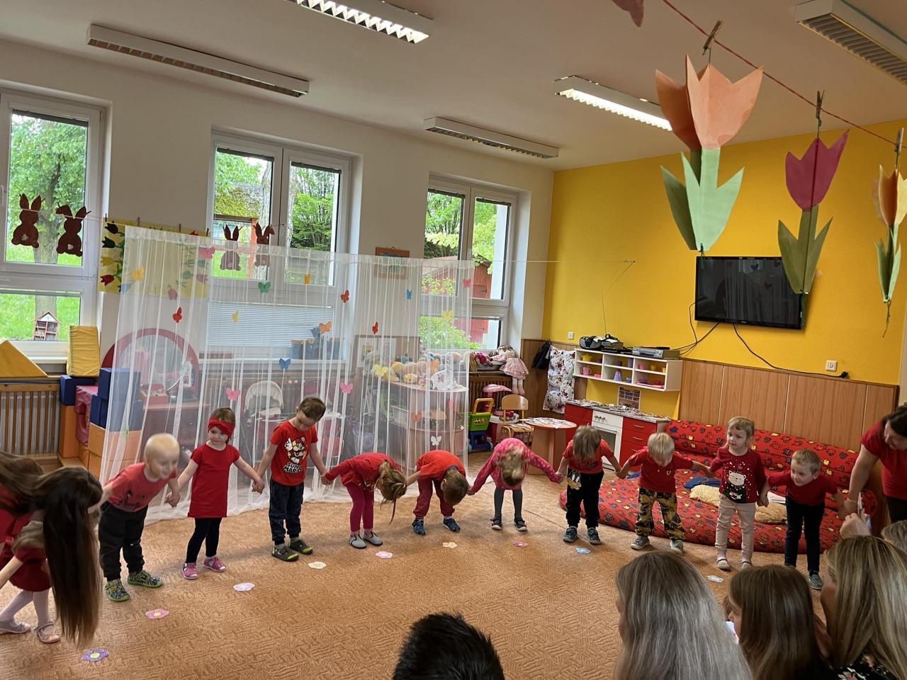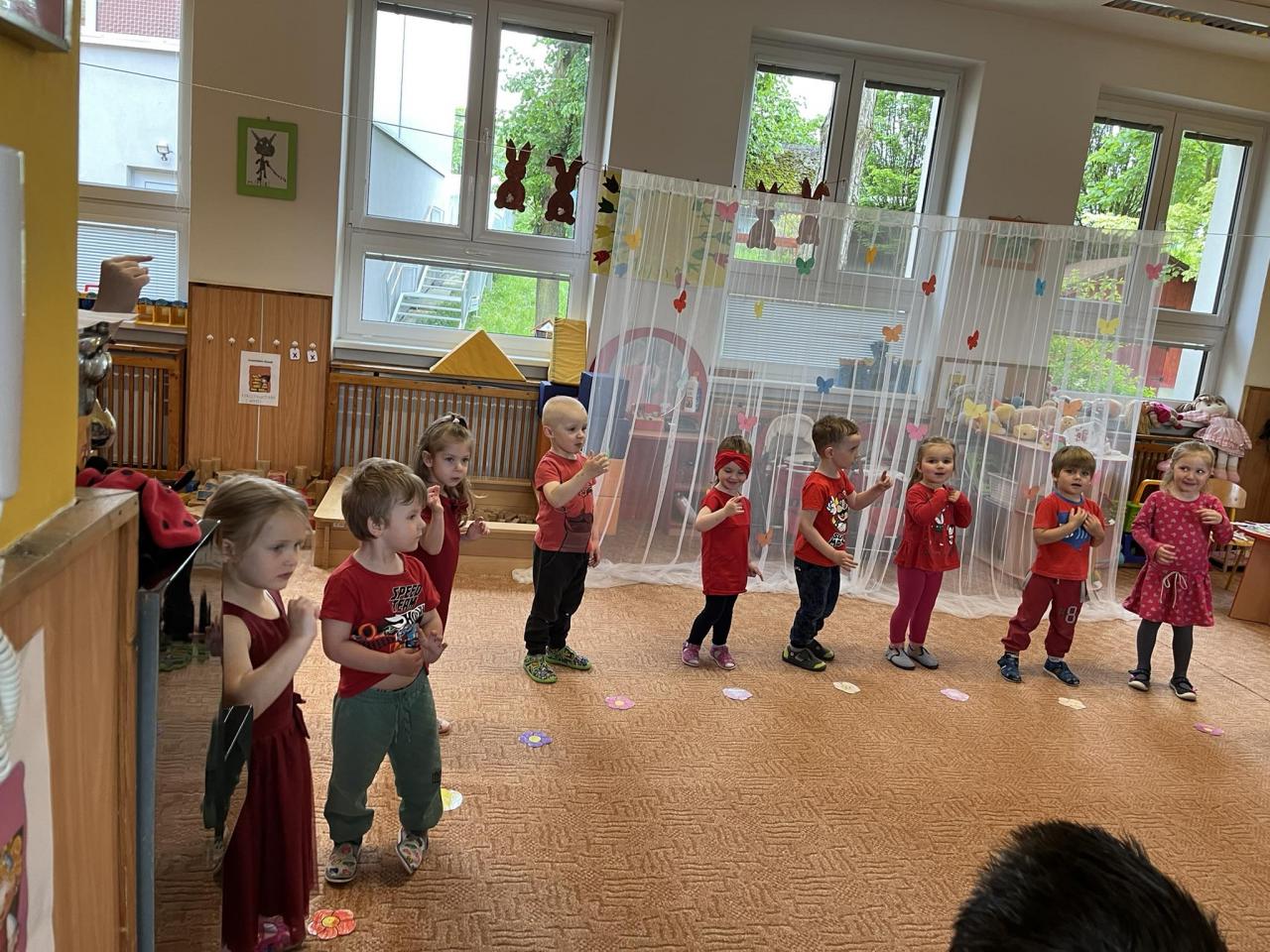 Ve čtvrtek 25.5. odpoledne se konala tradiční besídka, na které děti předvedly básničky, písničky "Naše Země kulatá", "Cib, cib, cibulenka", "Maminka" a taneček "Mateřinky". Na závěr děti předaly maminkám vyrobené srdíčko a kytičku z papíru. Děti se moc snažily udělat maminkám radost.