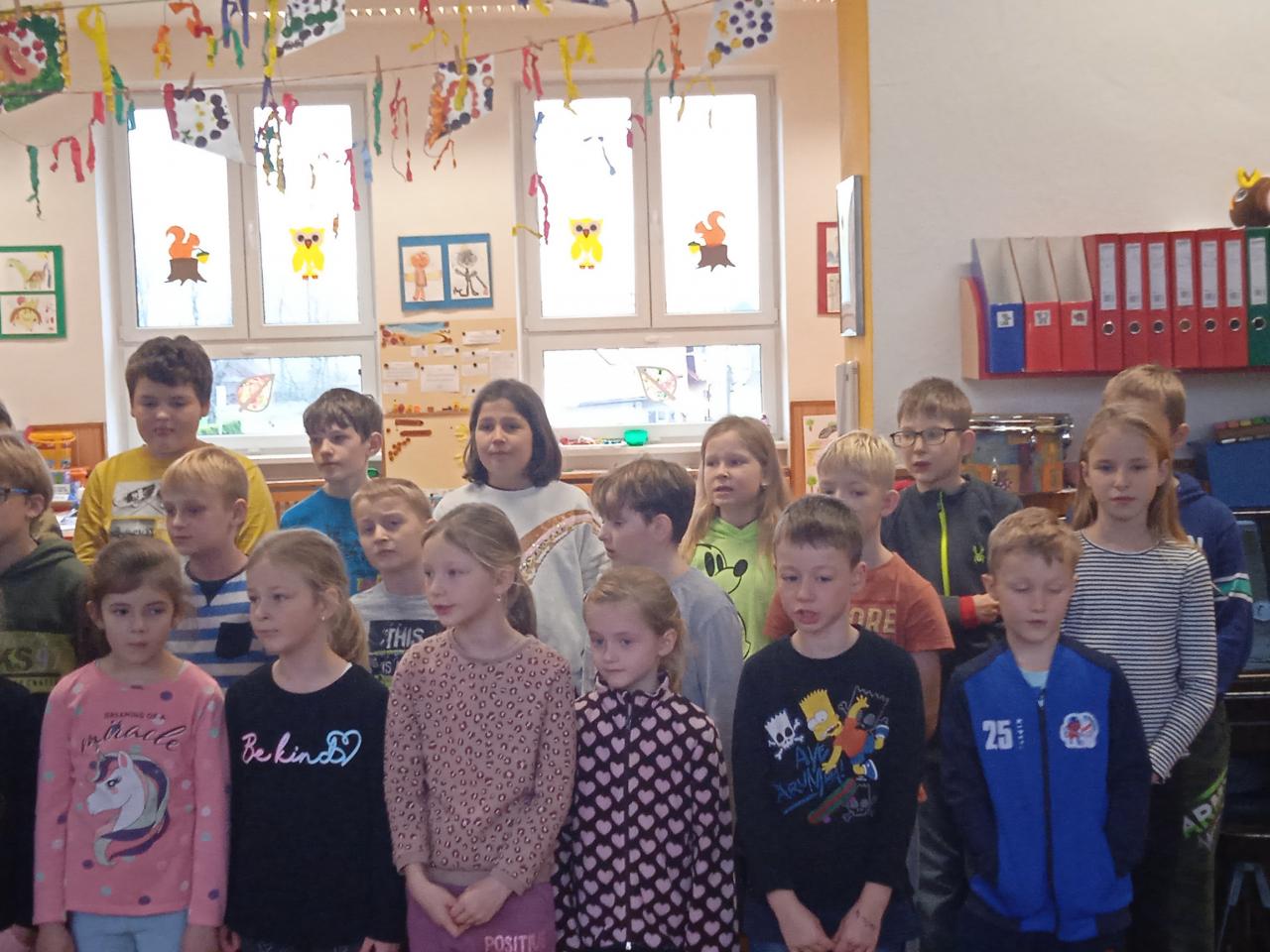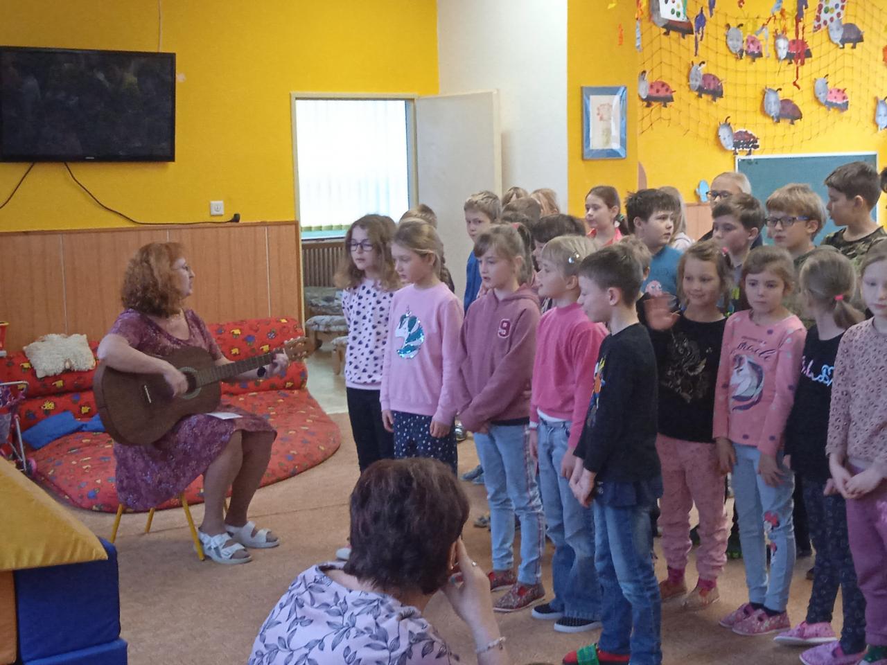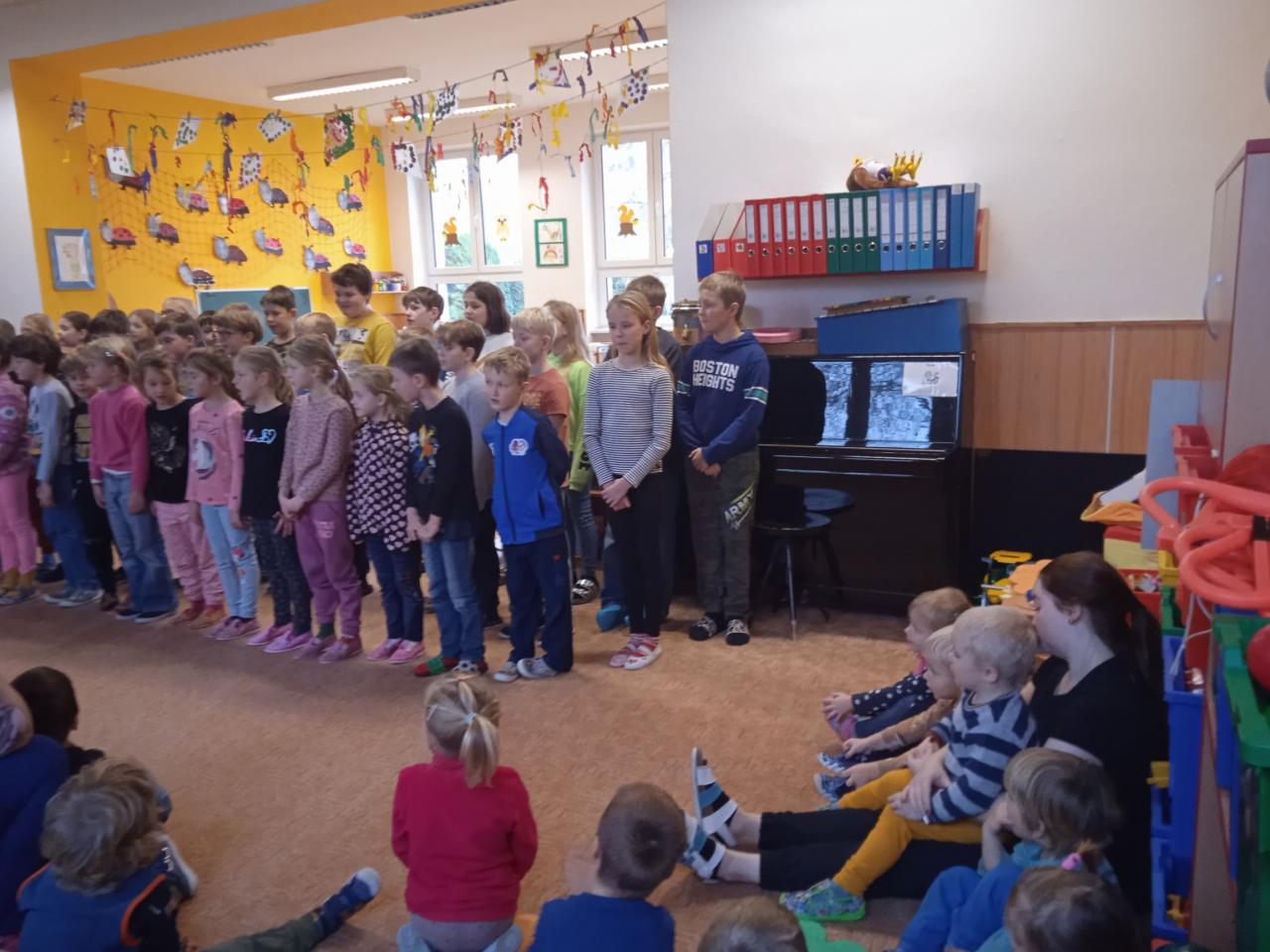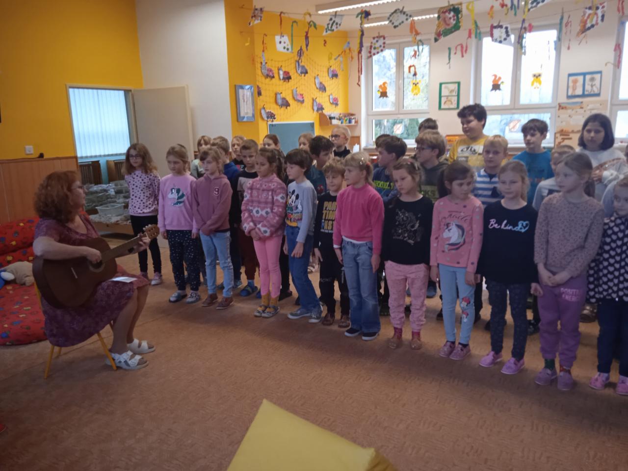 V týdnu od 21.11.- 25.11. jsme věnovali tématu oblékání a obouvání v různých ročních obdobích. V pátek nás navštívily děti ze ZŠ s pásmem vánočních písní. Na kytaru je doprovázela paní učitelka Pavlína Pokorná. Vystoupení se školákům velice povedlo.