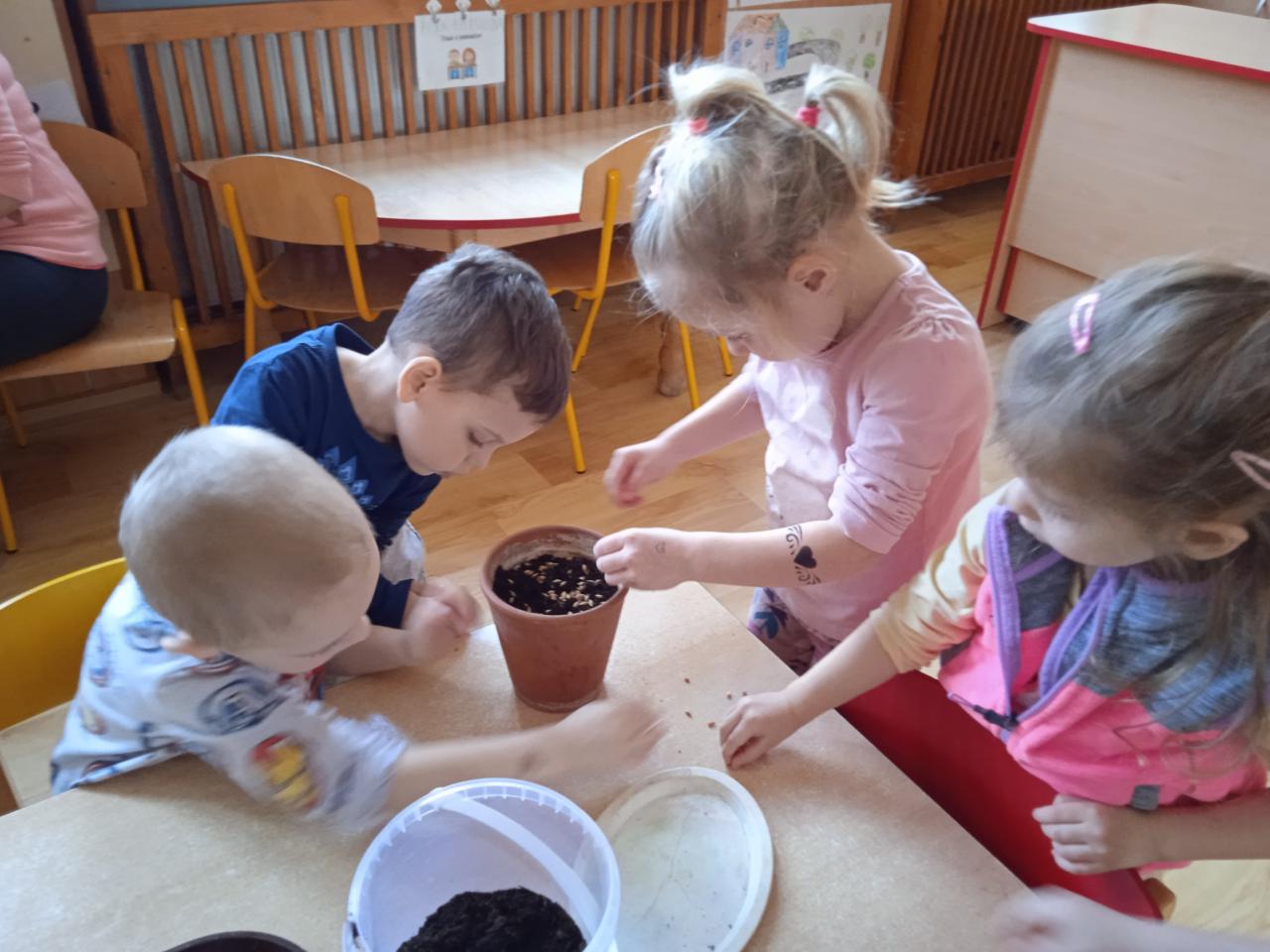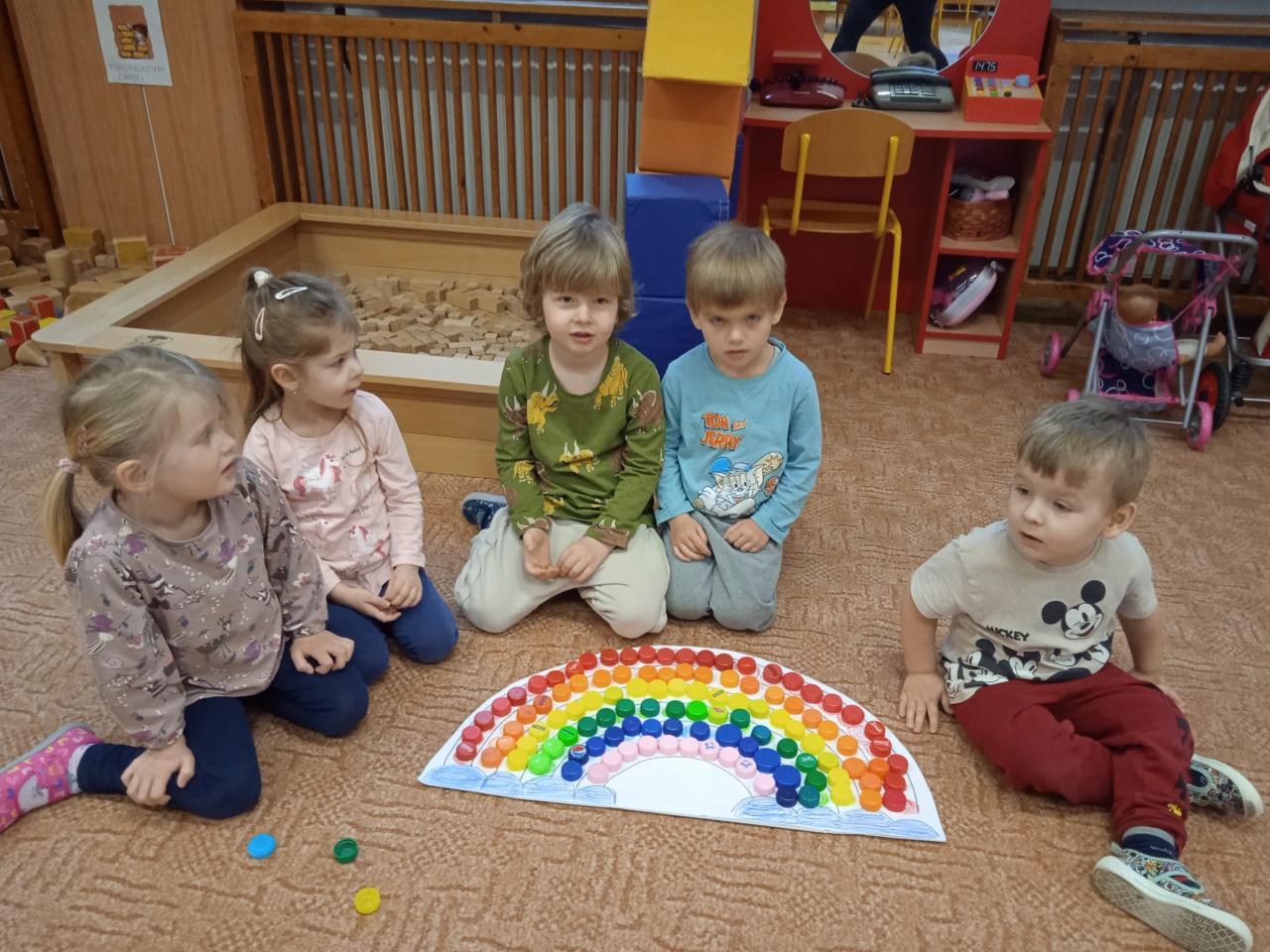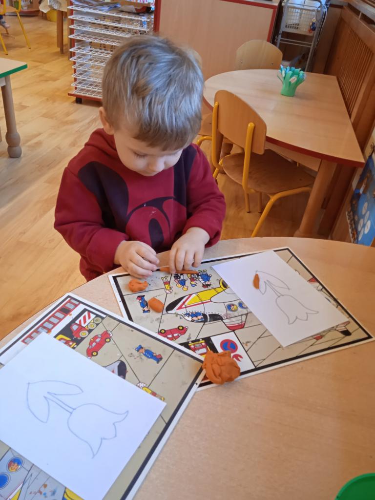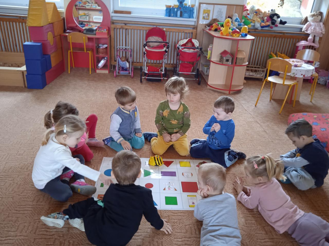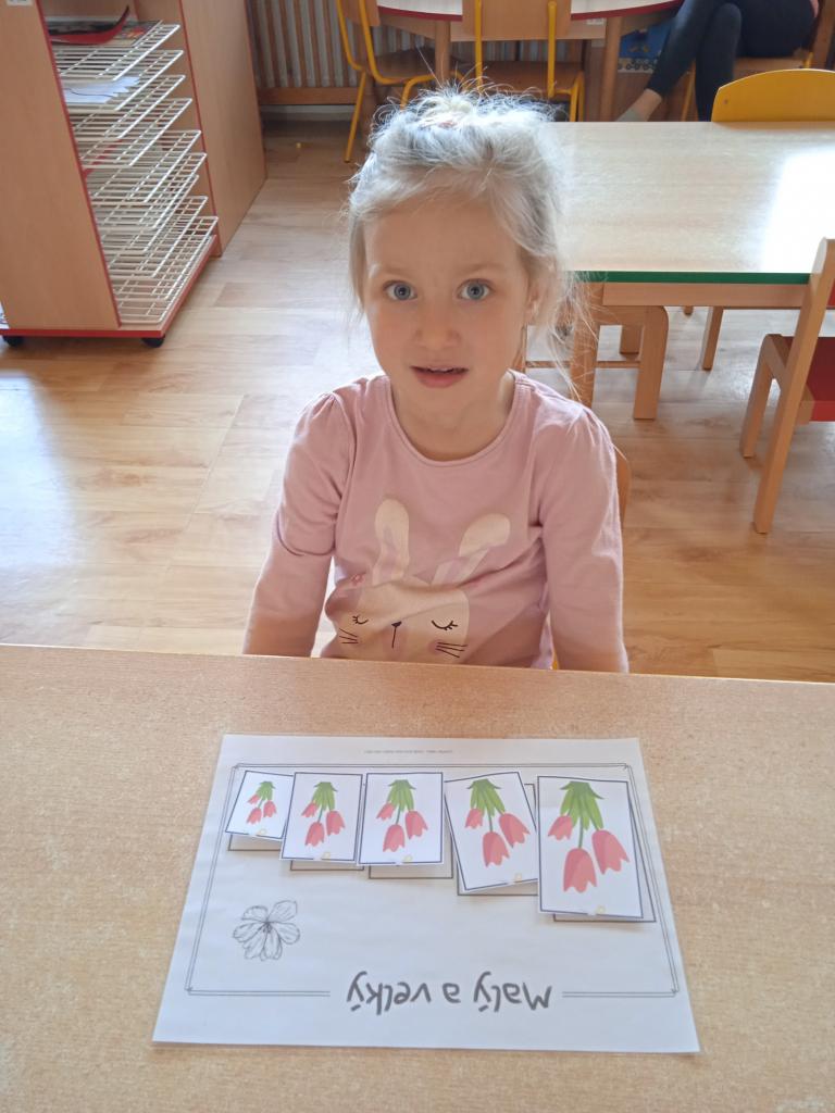 V týdnu 27.3.-31.3. jsme se věnovali tématu Jarní kvítí. Děti květiny malovaly, provlékaly provázkem, modelovaly, skládaly puzzle, řadily podle velikosti aj. Zkoušely programovat robotickou včelku a jezdily s ní na kytičky a v pátek cvičily v tělocvičně s psychomotorickým padákem. Eva H.