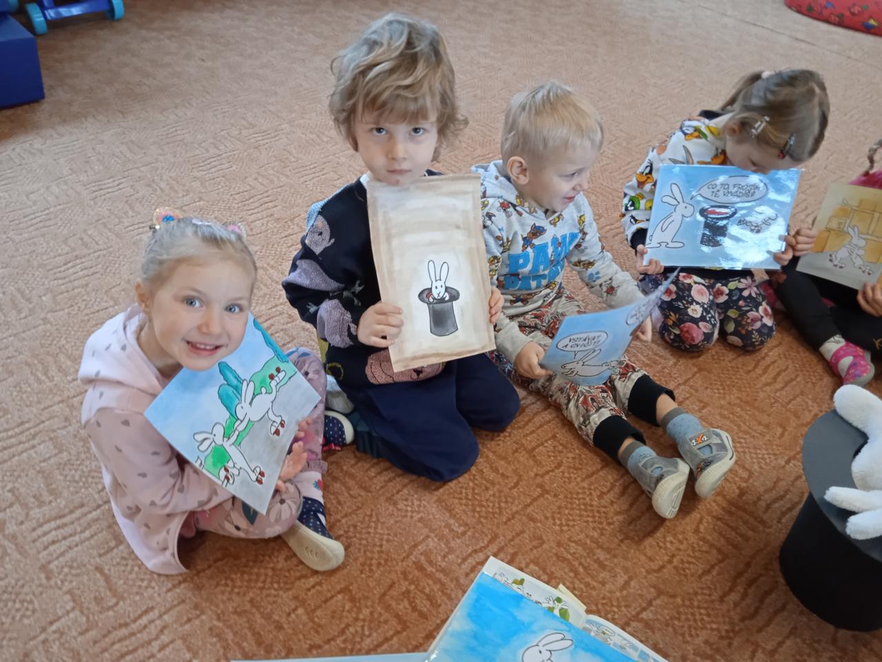 V týdnu 13.-17.3. jsme se věnovali knihám. Děti si přinesly z domova svou oblíbenou knihu a v kroužku ji představily kamarádům. Děti to velice bavilo a se zaujetím si knihy prohlížely a navzájem se poslouchaly. Také k nám přiletěli Bob a Bobek, králíci z klobouku a zůstali u nás celý týden. Eva H.