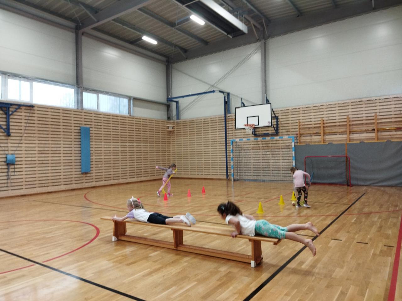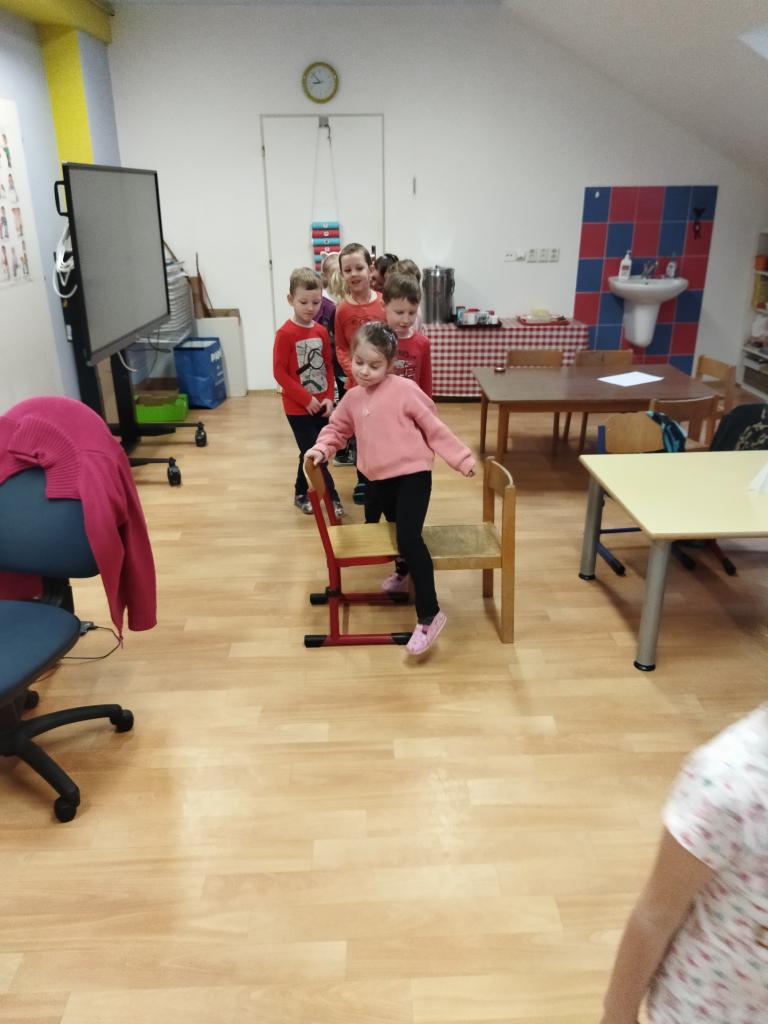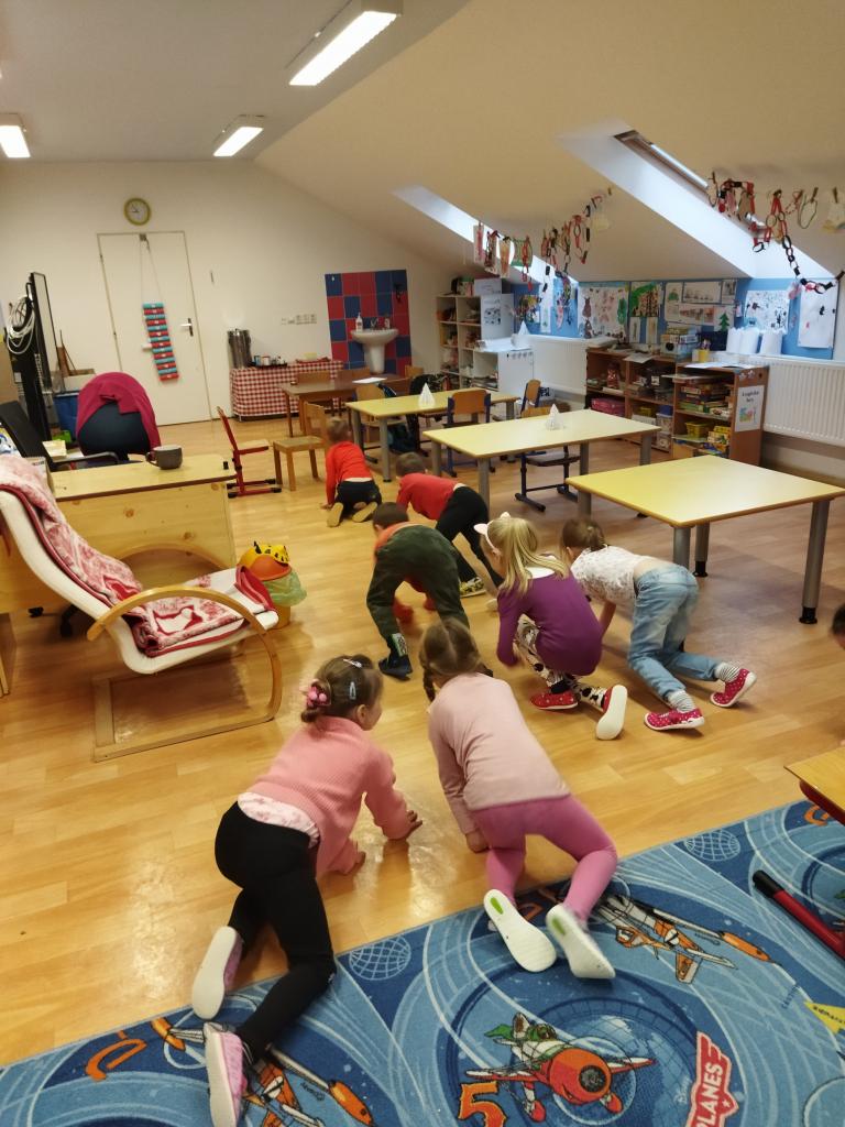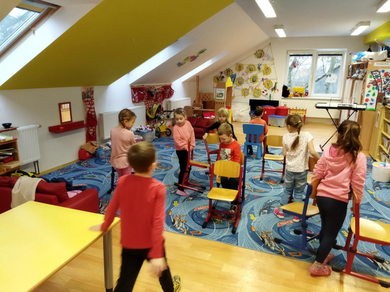 Hra na horolezeckou výpravu - děti společně tvoří autobus
