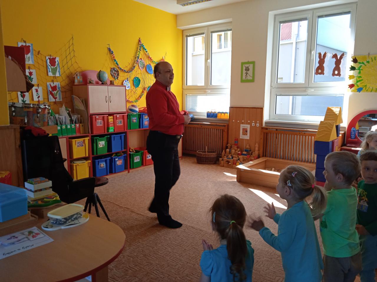 Seznamoval děti se základními hudebními výrazy a hudebními nástroji. Dětem se program velmi líbil a aktivně se zapojily zpěvem, hrou na nástroje i tělo. Eva H.