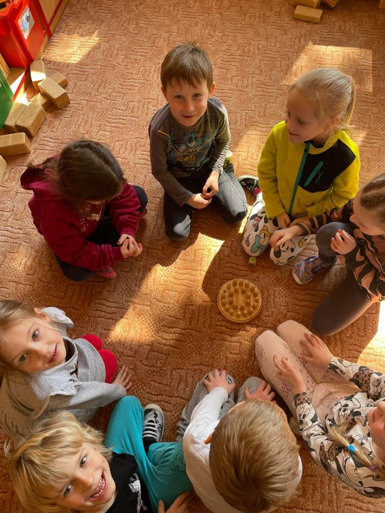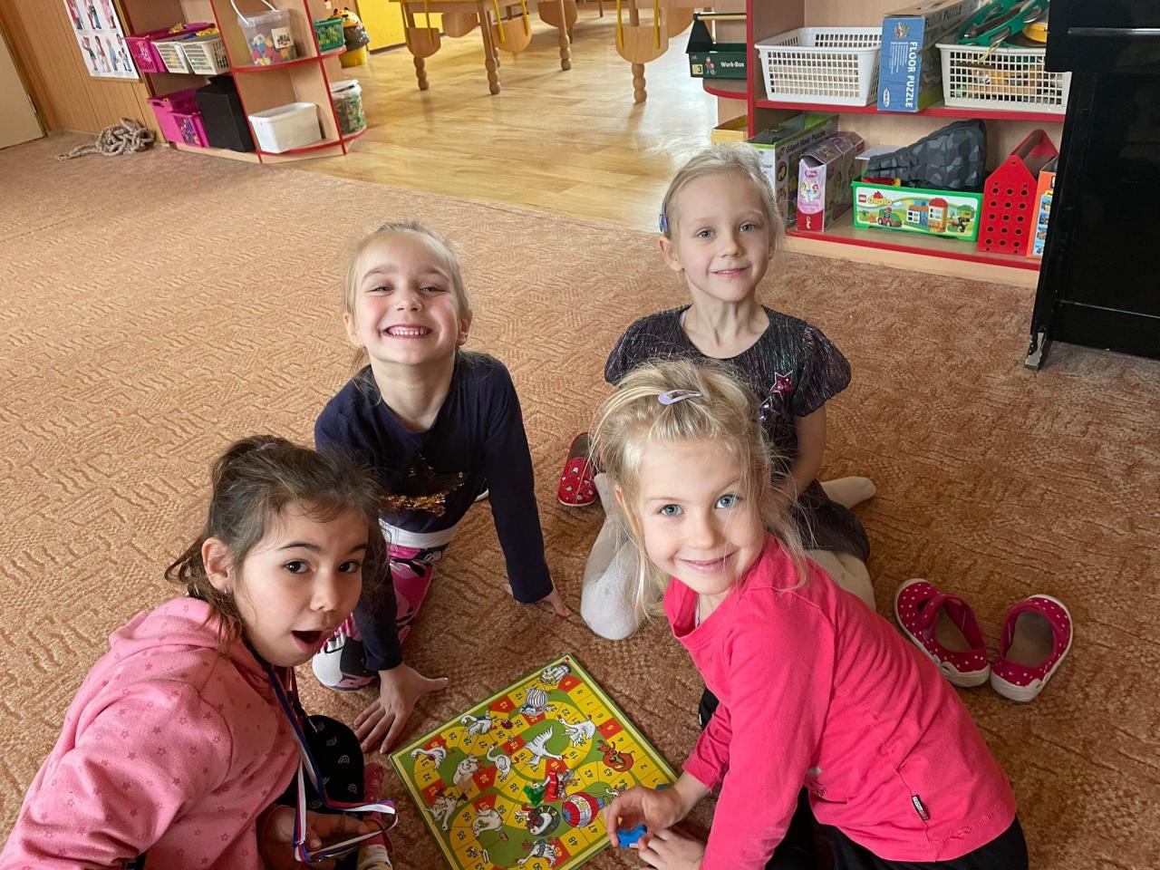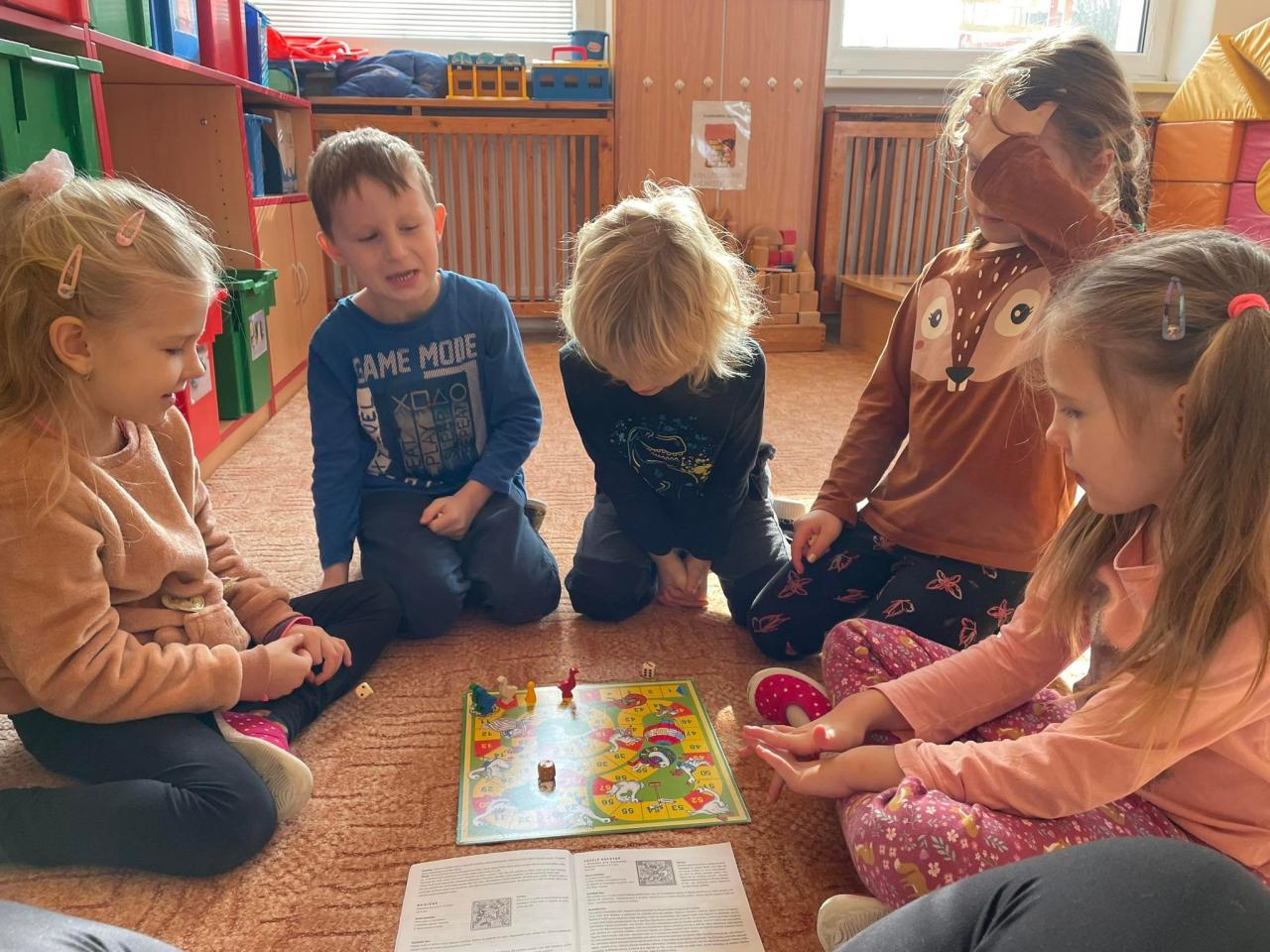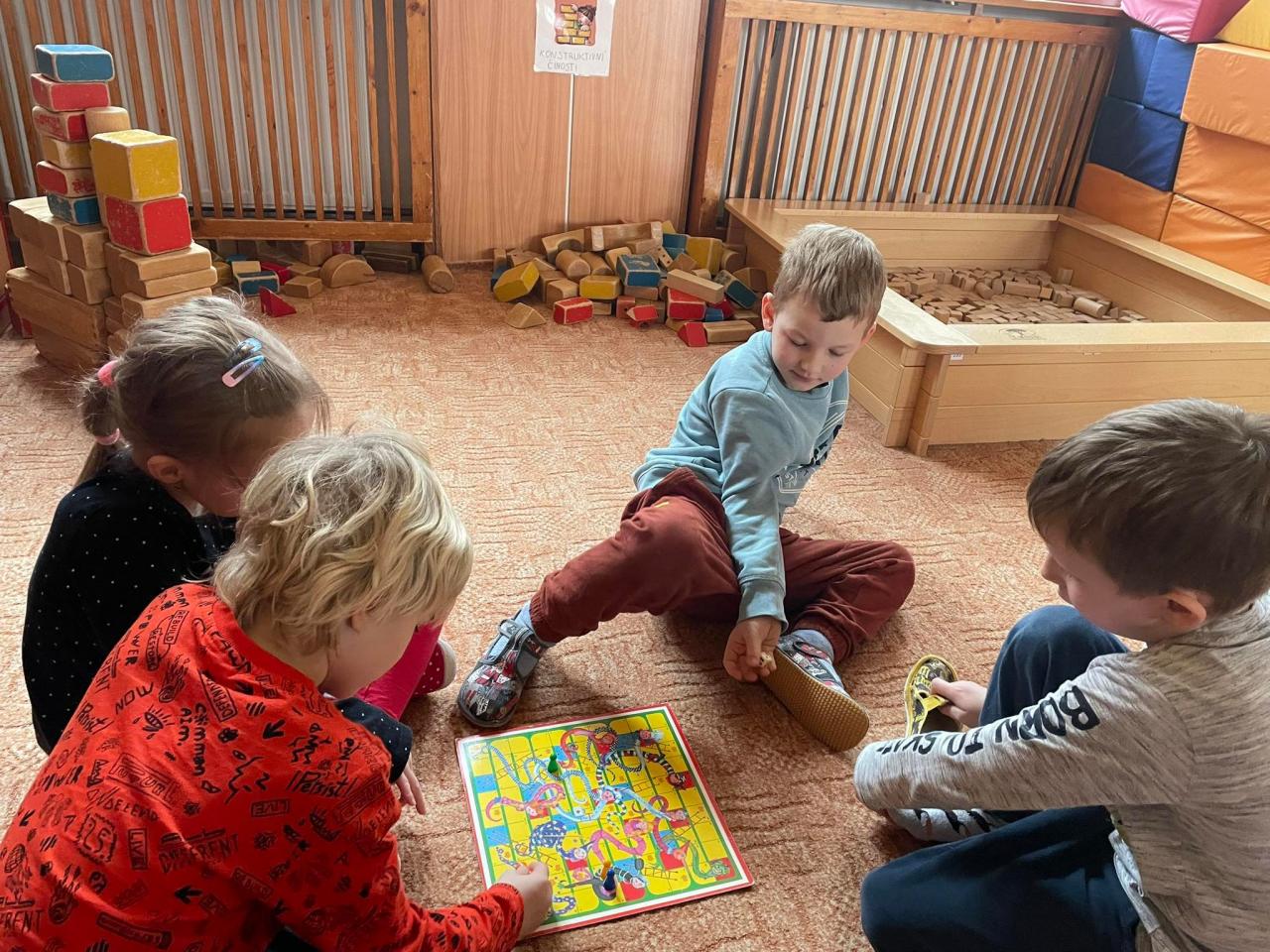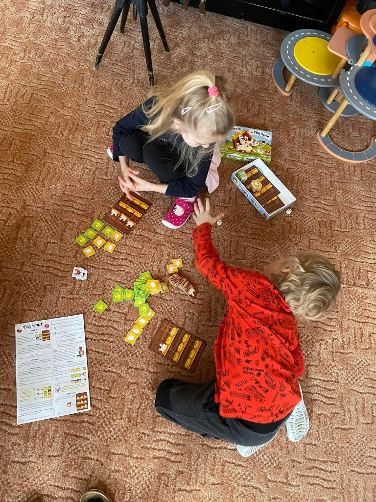 S předškoláky hrajeme hry vždy dle výběru - oblíbená hra cesta kolem světa, plný kurník, husičky nebo žížalky. Nově si děti mohou nosit do kroužku své vlastní oblíbené hry, které hrají doma. První byla dřevěná paměťová hra na procvičení paměti a soustředění - dětem se moc líbila.