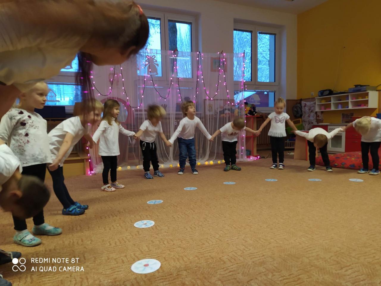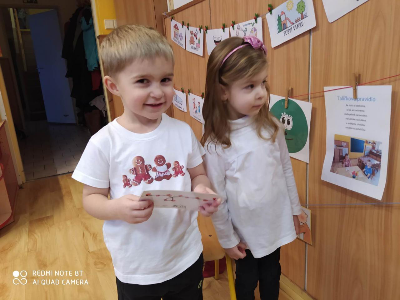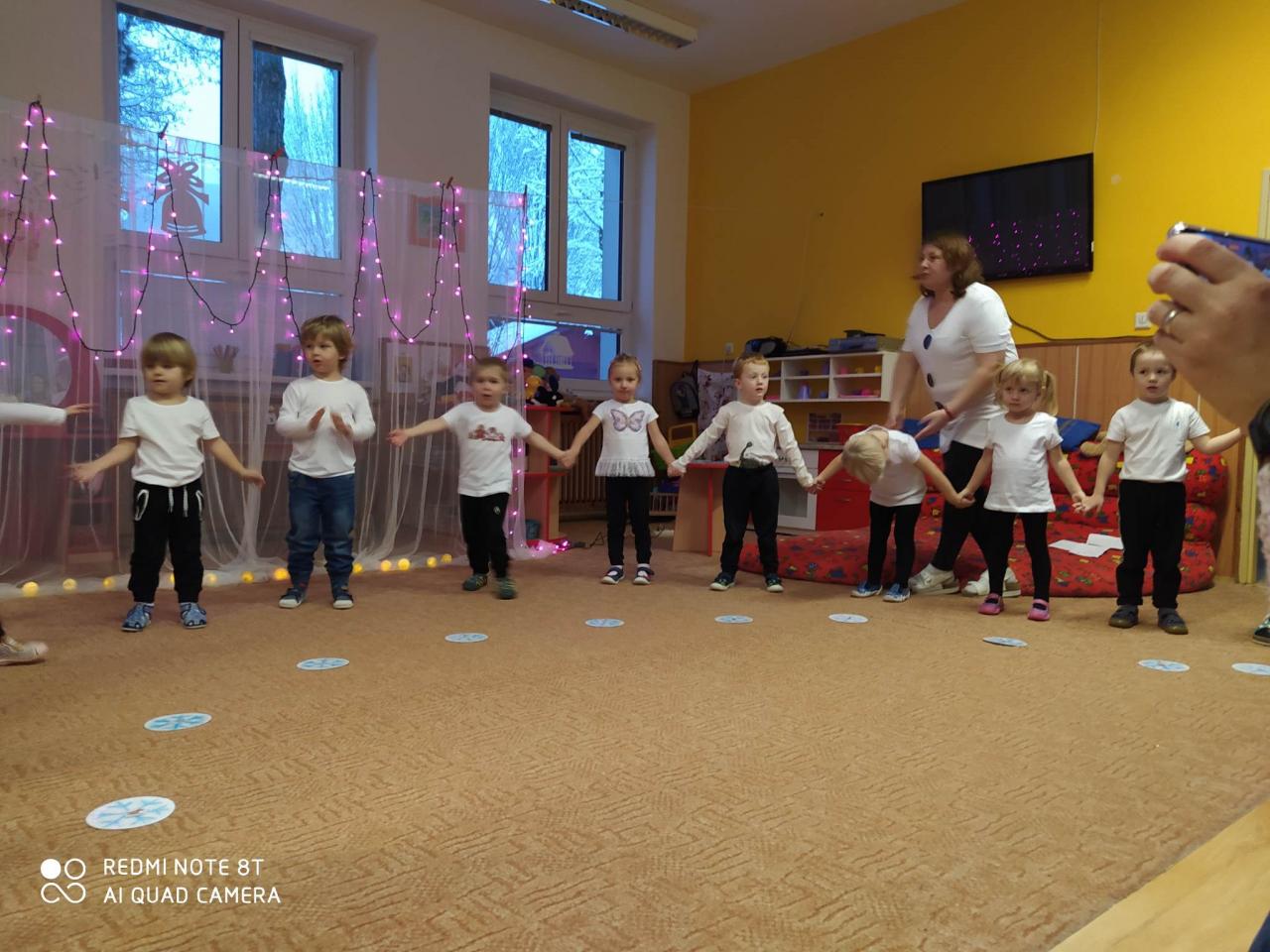 Ve čtvrtek 15.12. se konala vánoční besídka. Děti přednesly básničky s pohybem " Čertovská", "Chumelenice" a " Padá vločka z nebe", zazpívaly písničky "Čertíci ťukají na dveře" a "Sněží" a zatančily taneček "Sněhuláci". Na závěr děti předaly rodičům přáníčko a perníčky. Eva H.