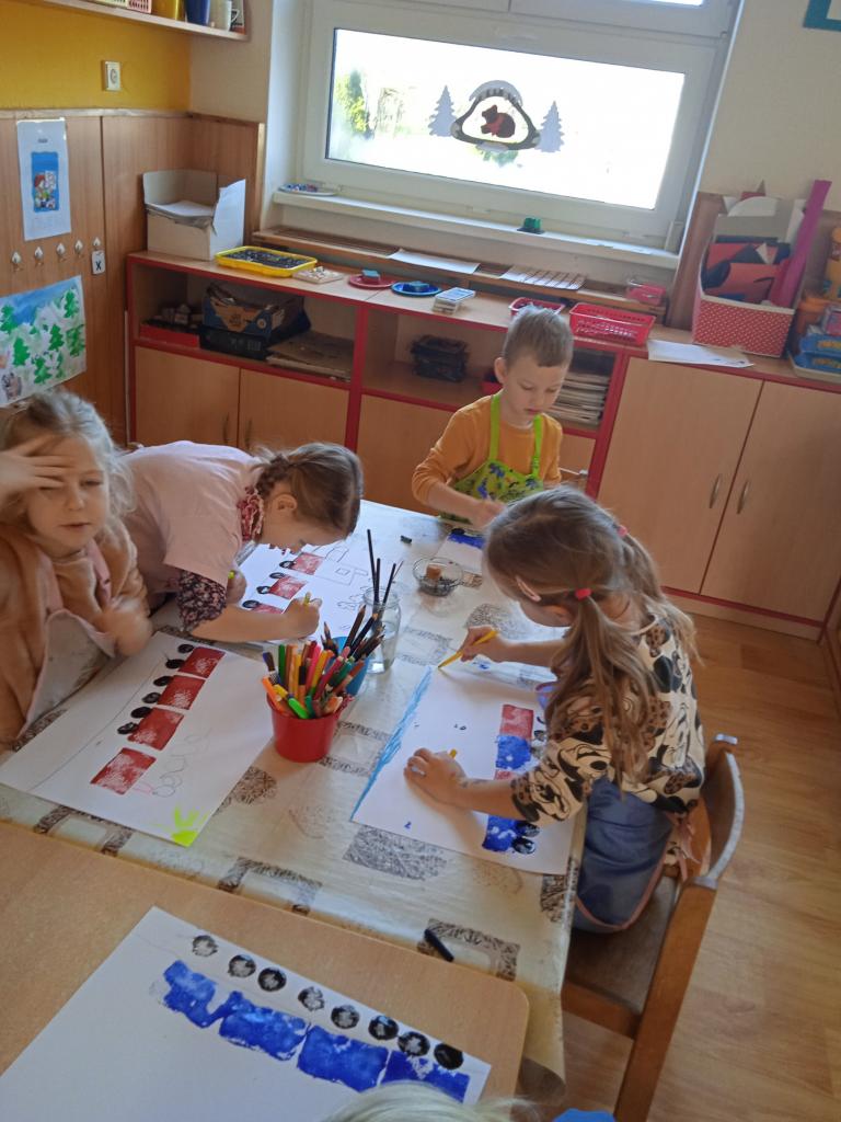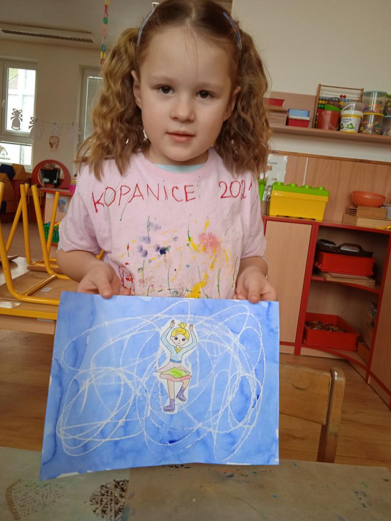 Děti se zapojily do výtvarné soutěže, kterou pořádá Středisko volného času v Ostravě. Malovaly na téma Vlaky, vláčky, mašinky. A dále v lednu malovaly na zimní témata Sněhuláka (suchý pastel + pastelky) a Kluziště s krasobruslařkou a nebo hokejistou (bílá voskovka, ředěným inkoustem) Eva H.