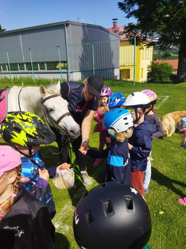 V týdnu od 12.6.2023 si děti ze třídy Sluníček, povídaly o zvířatech v ZOO. Plnily úkoly a hry s touto tématikou a prožily krásné dopoledne s koňmi od paní Fialové,na kterých se i svezly.
