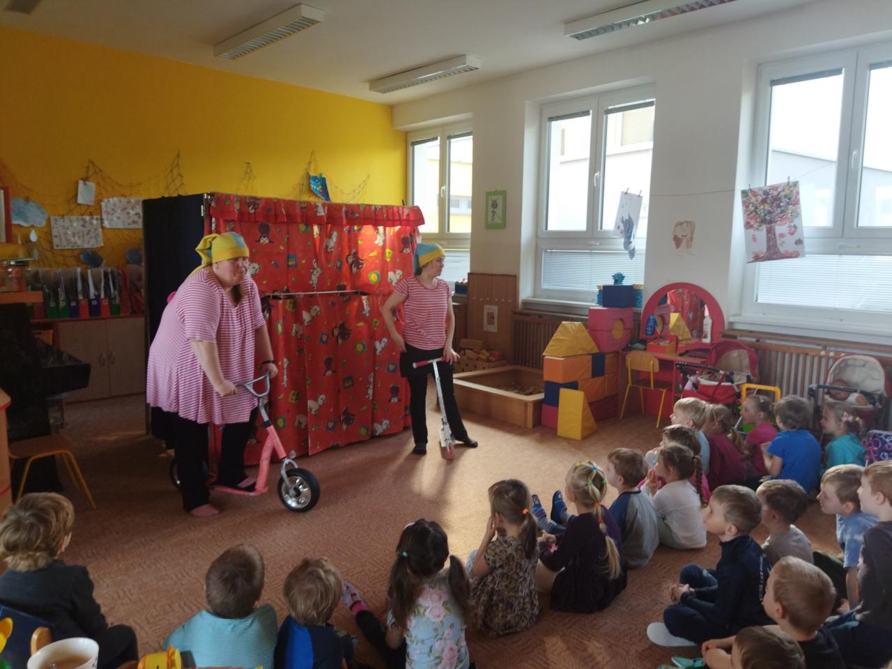 V tomto týdnu nás provázely dopravní prostředky. Děti tvořily společný obrázek a plnily i jiné zábavné úkoly, při kterých si opakovaly a zdokonalovaly vědomosti z oblasti dopravních prostředků. Přijelo k nám také divadélko, "Koloběžka" s "Námořnickou pohádkou".