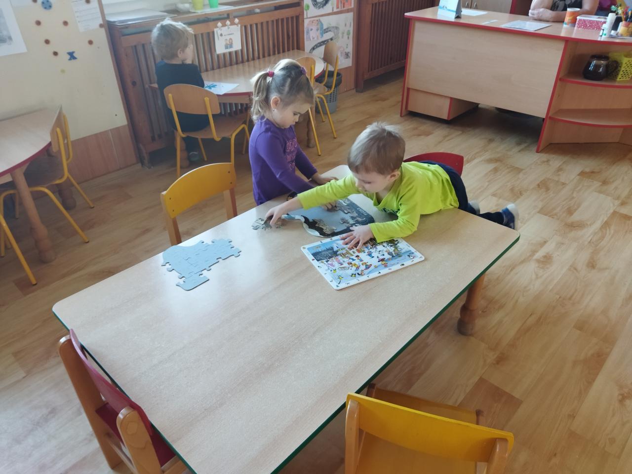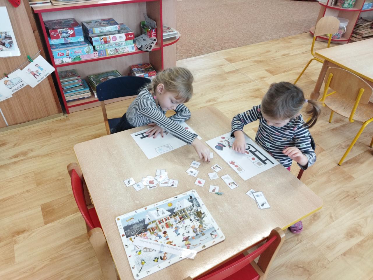 Přiřazování věci na saně podle předlohy+ zimní puzzle - rozvoj zrakového vnímání