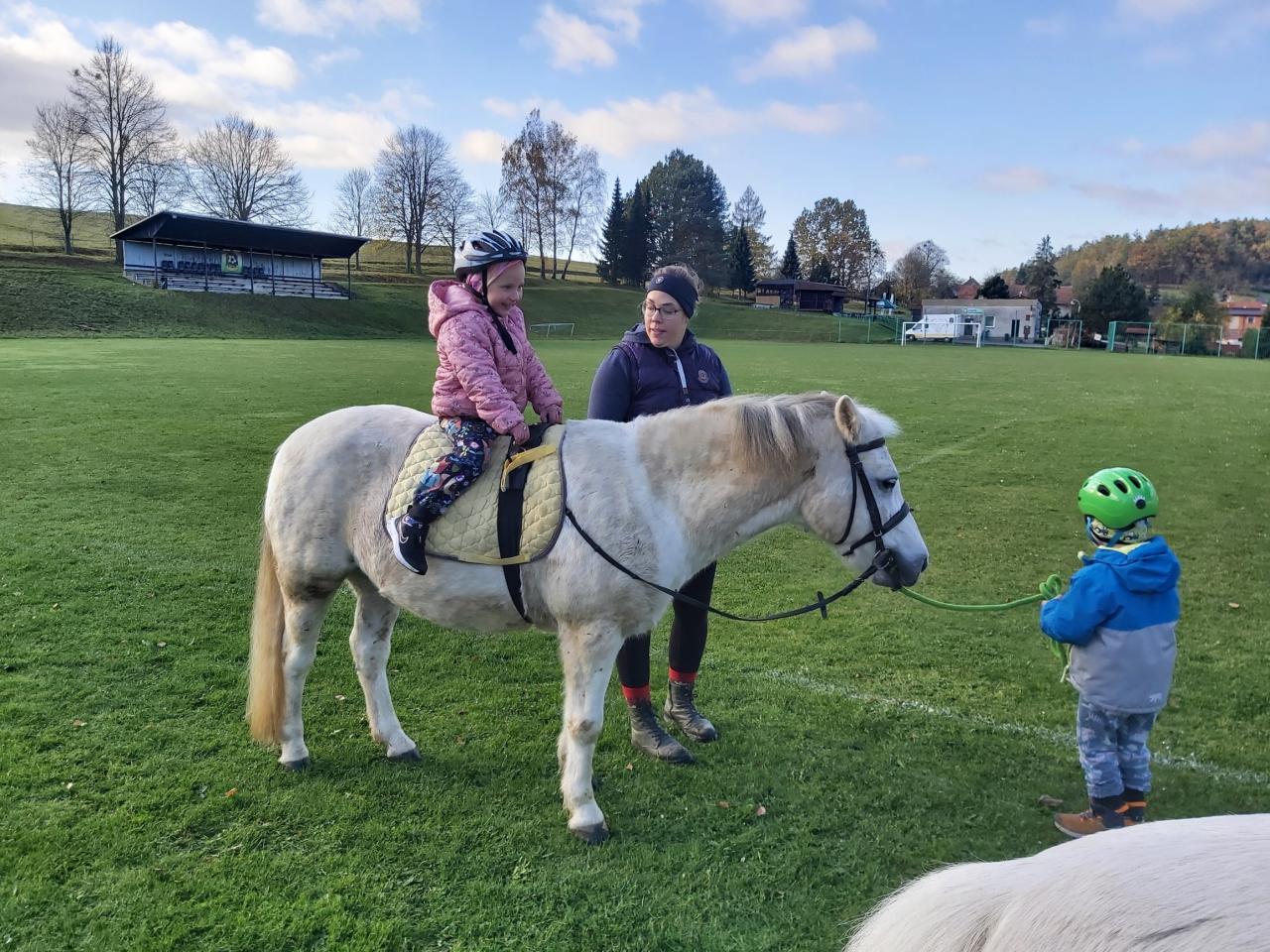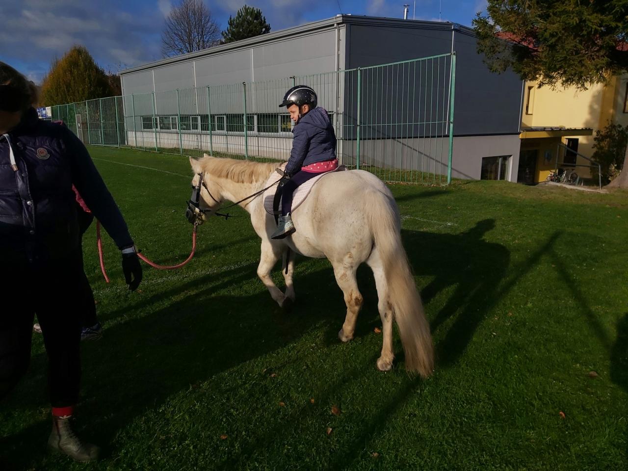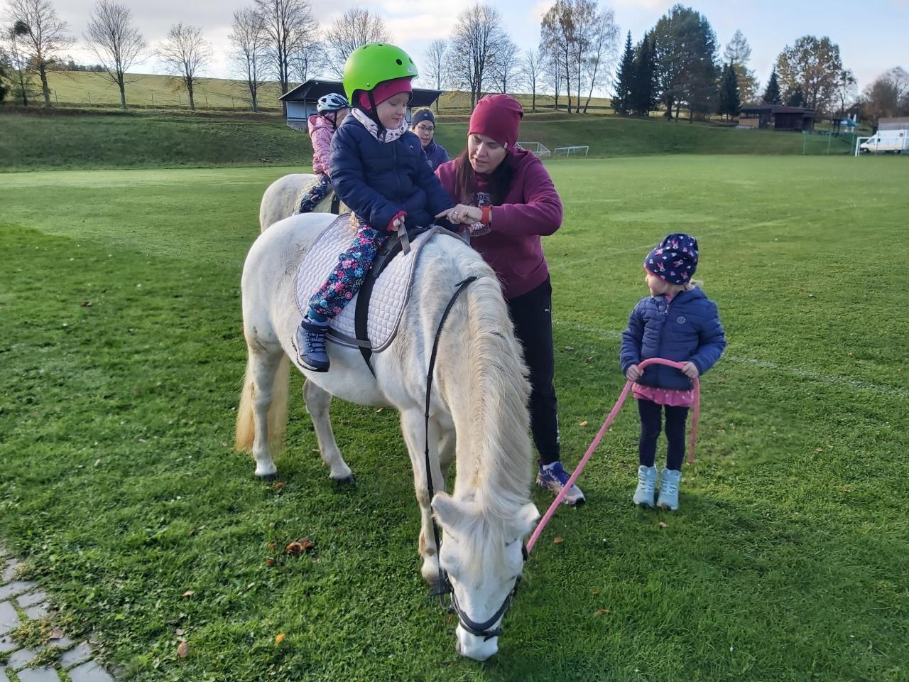 Děti se seznámily s legendou o svatém Martinovi. Ve středu si užily projektový svatomartinský den, kde soutěžily a také se projely na bílém koni.