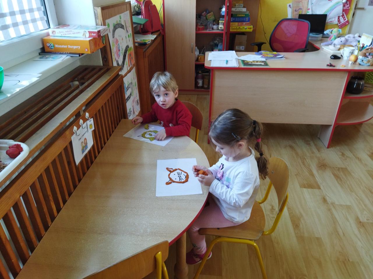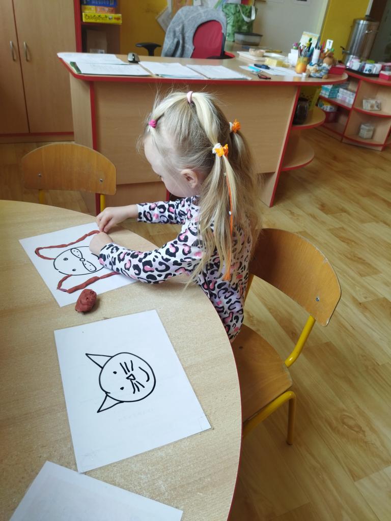 Zapichování vatových tyčinek do předlohy - rozvoj jemné motoriky