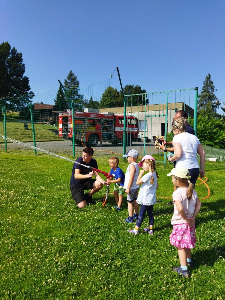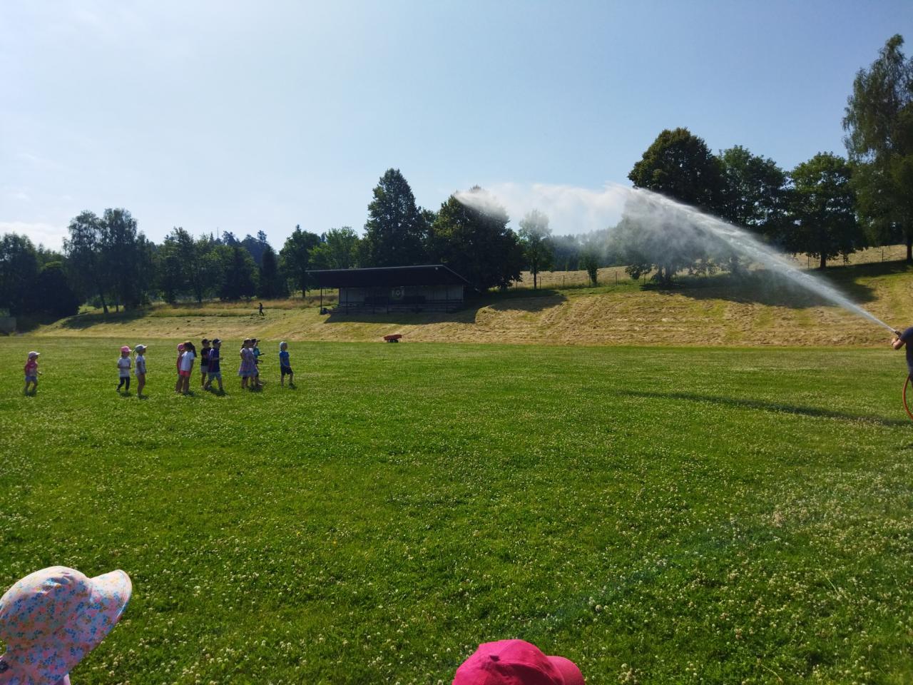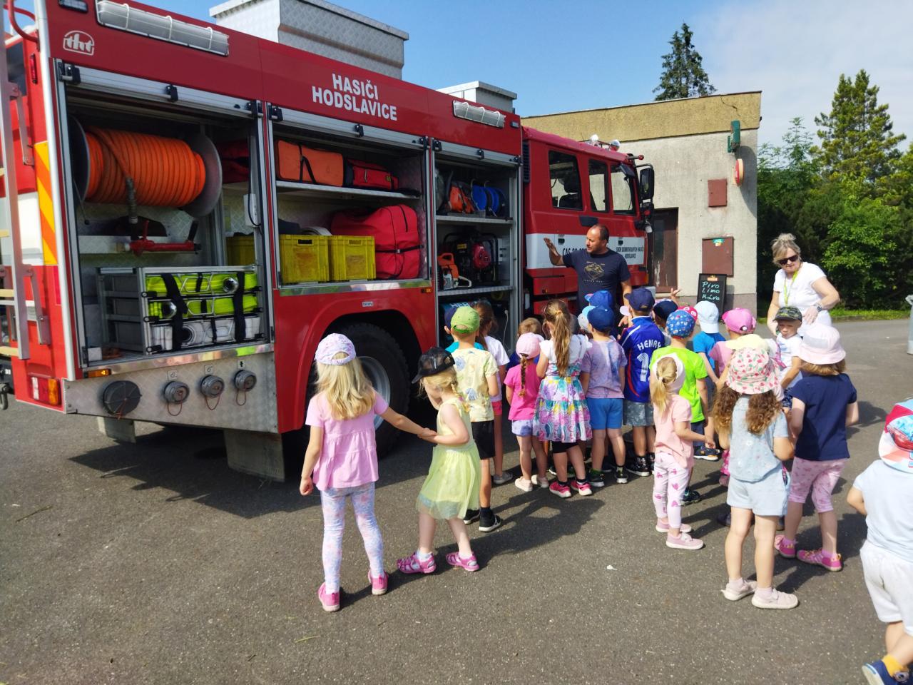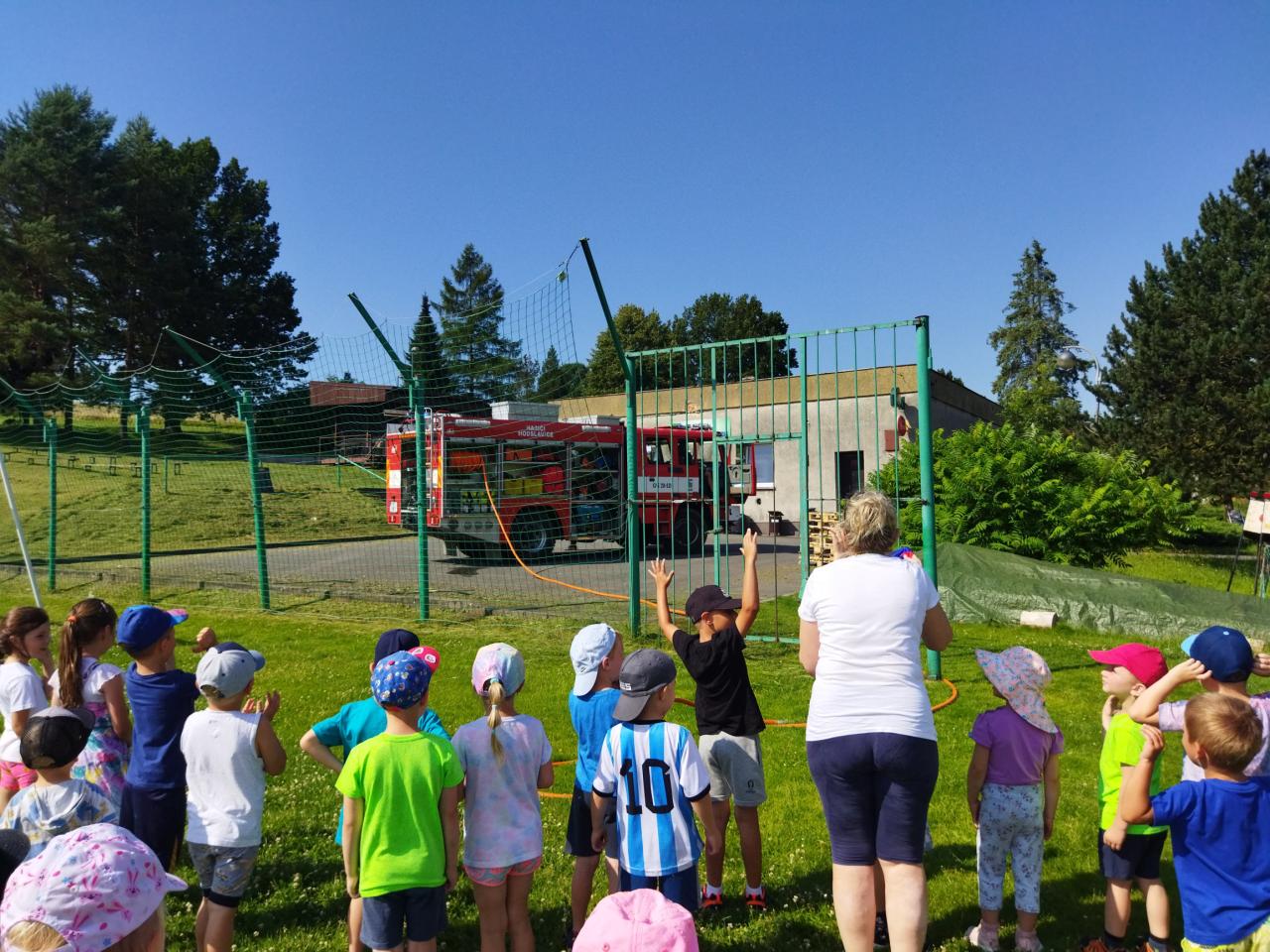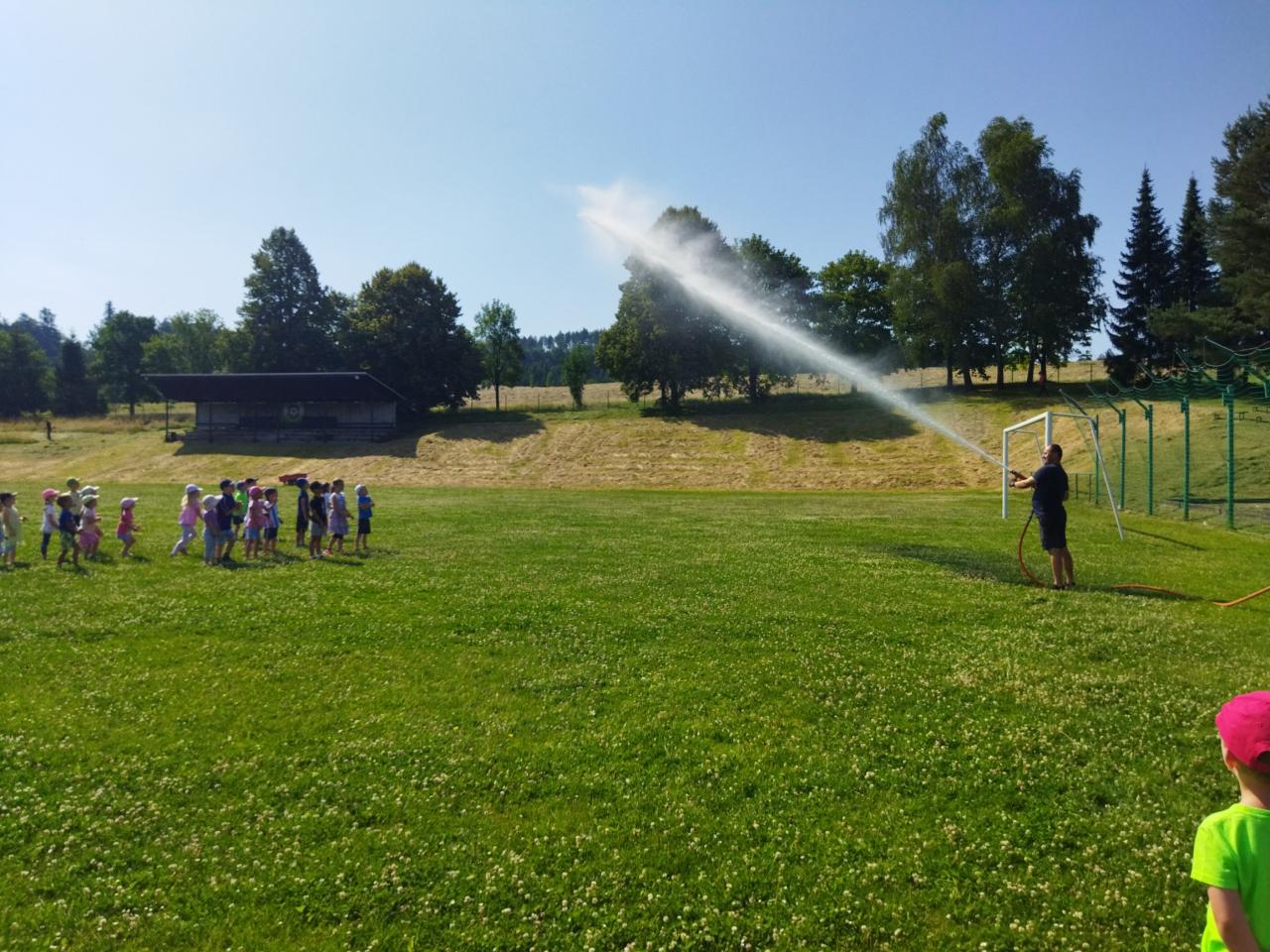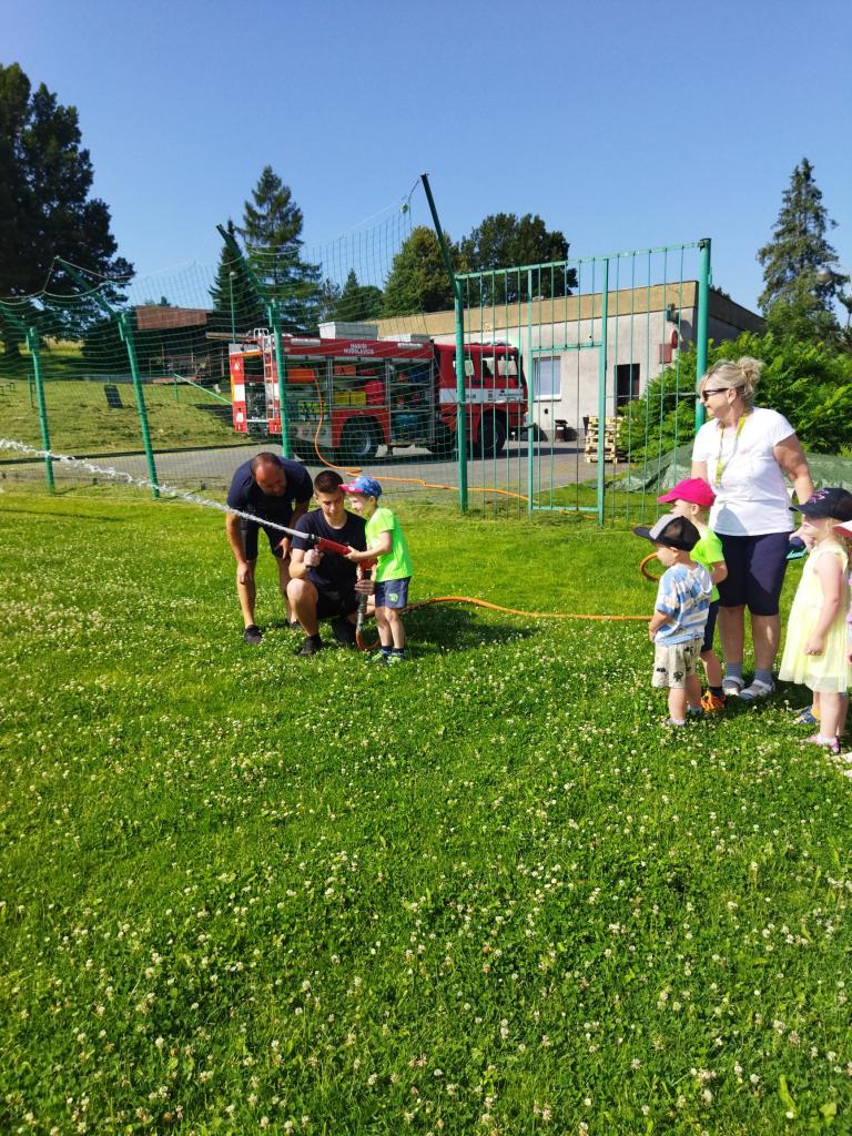 V úterý 25.6.2024 nás navštívil pan hasič s hasičským autem z Hodslavic. Děti seznámil s prací hasiče a vysvětlil a ukázal vybavení hasičského vozu. Na závěr si děti mohly vyzkoušet stříkat hadici a nesmělo chybět ani pokropení, které bylo v dnešních horkých dnech velmi příjemné.