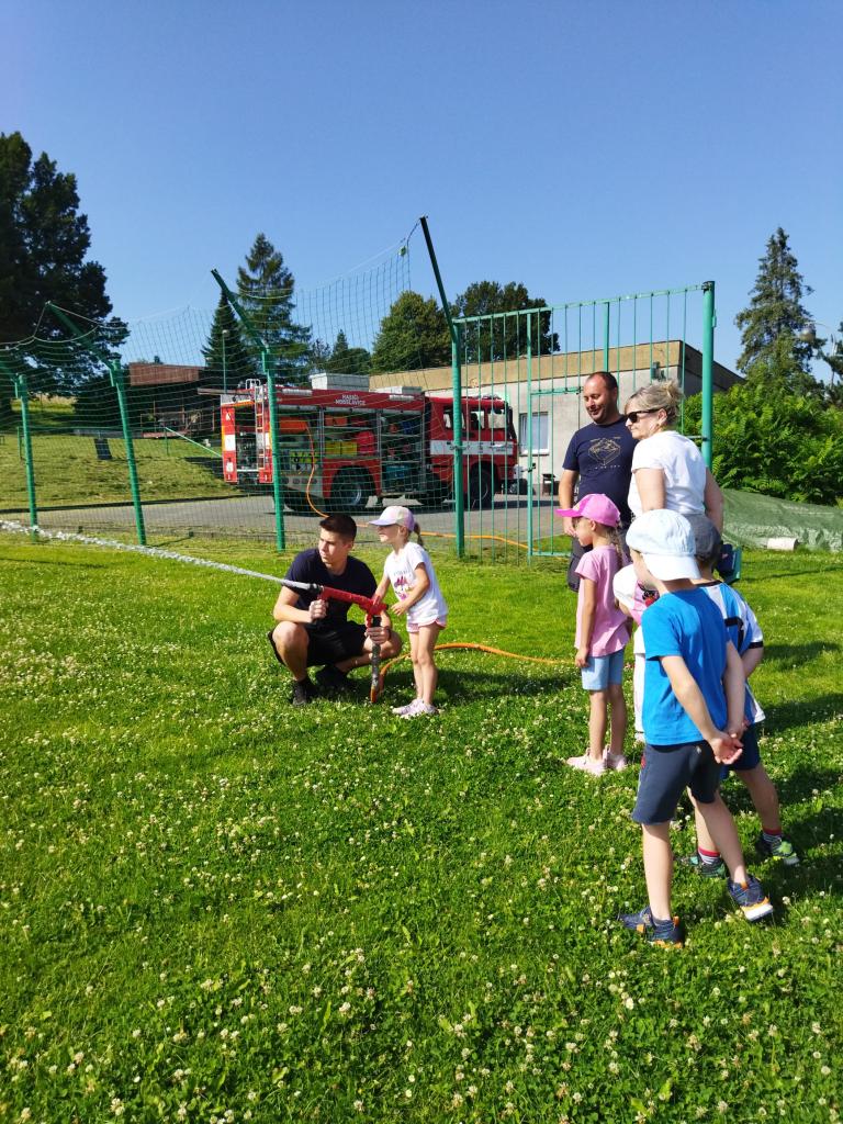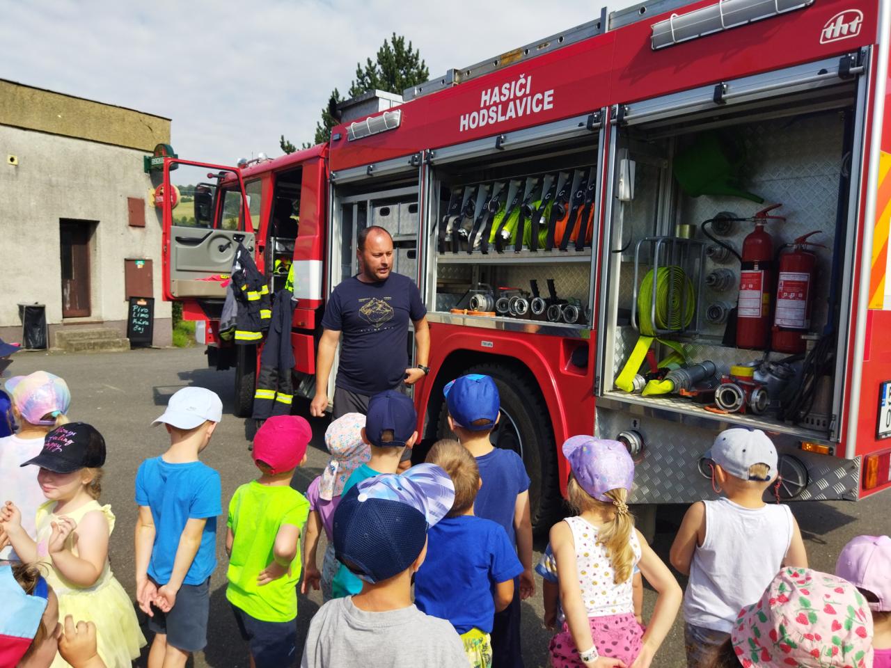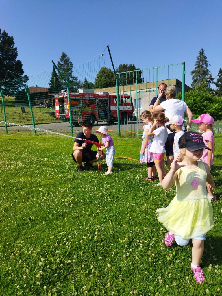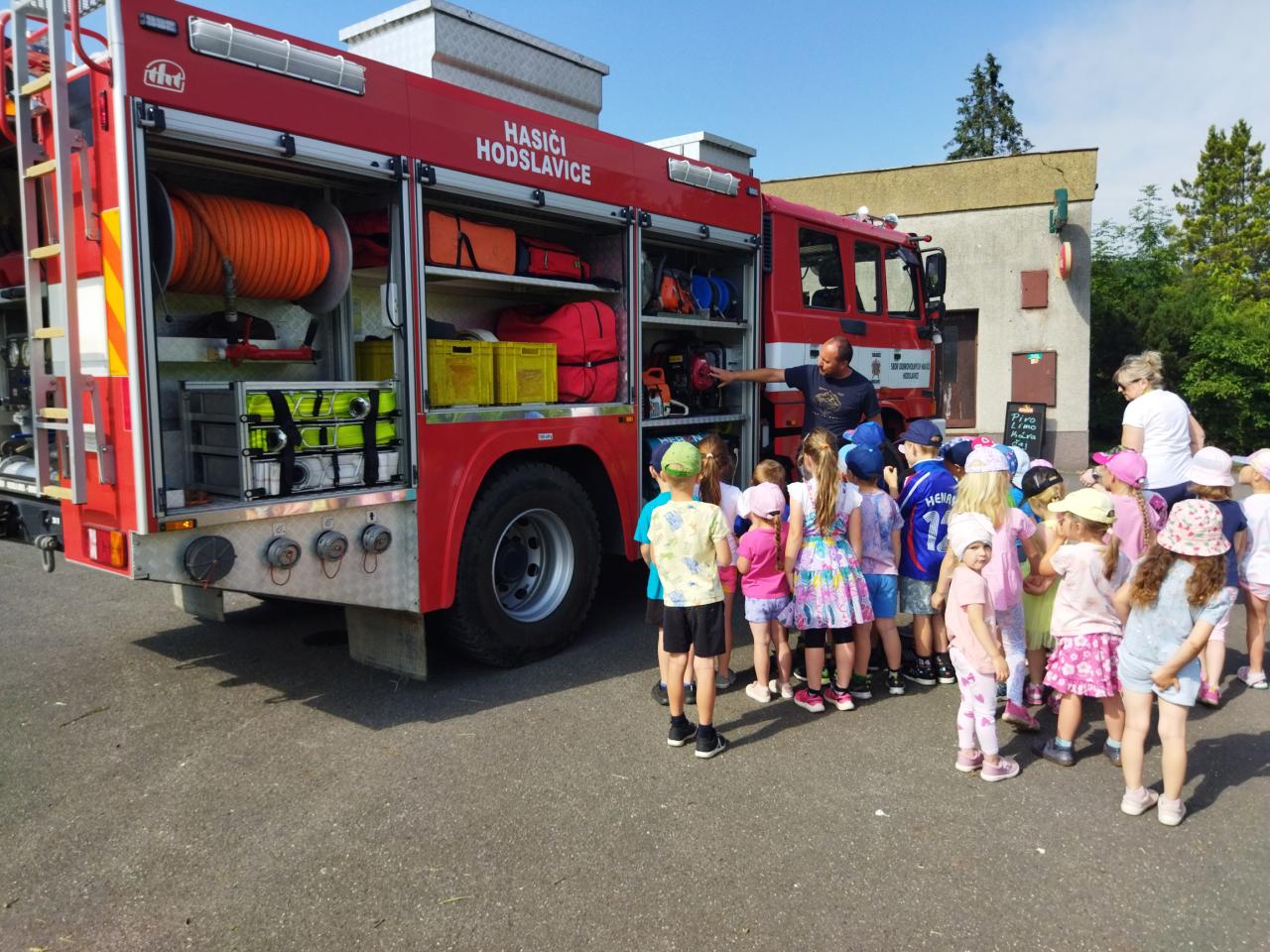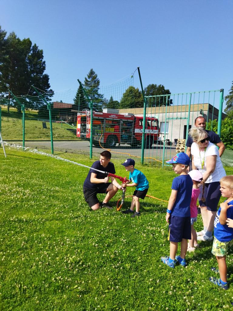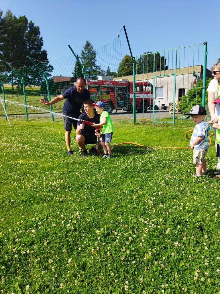 V úterý 25.6.2024 nás navštívil pan hasič s hasičským autem z Hodslavic. Děti seznámil s prací hasiče a vysvětlil a ukázal vybavení hasičského vozu. Na závěr si děti mohly vyzkoušet stříkat hadici a nesmělo chybět ani pokropení, které bylo v dnešních horkých dnech velmi příjemné.
