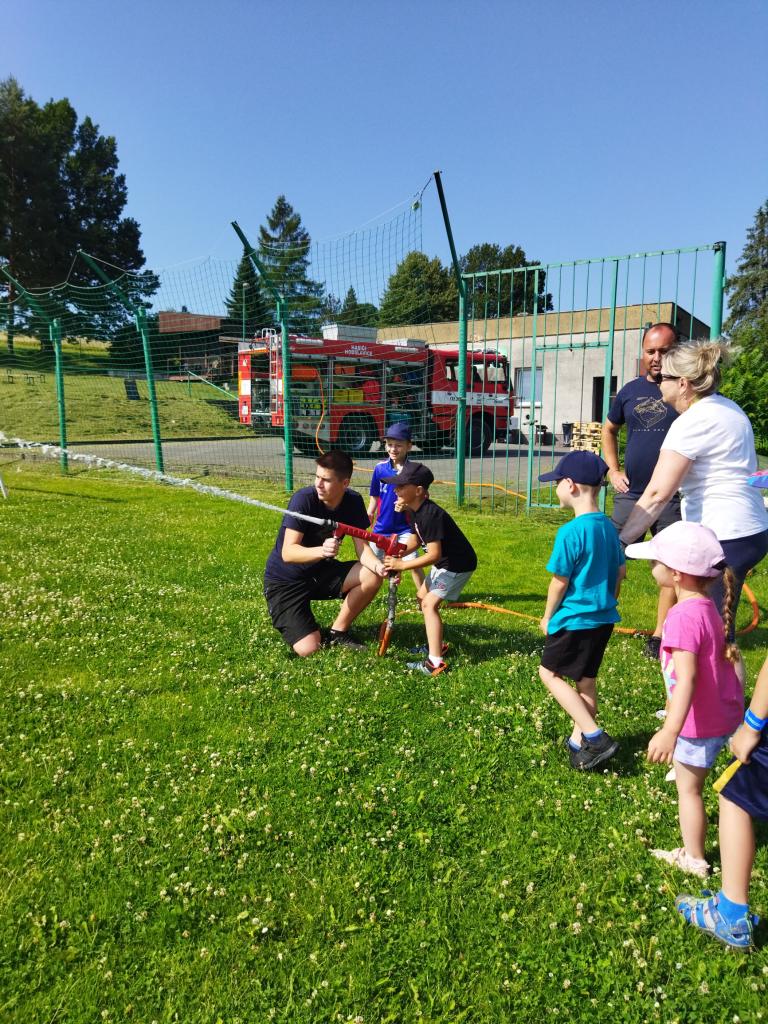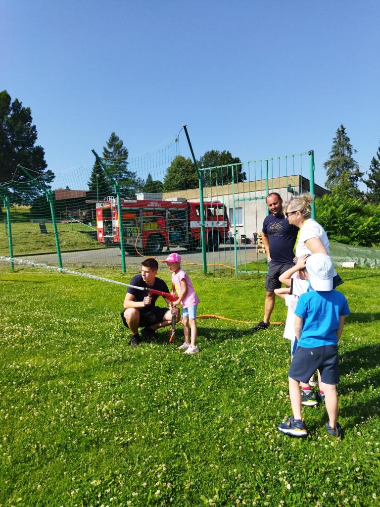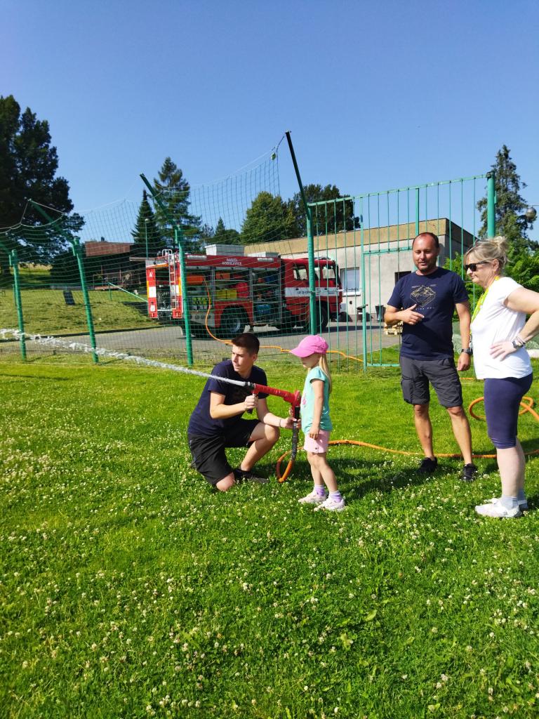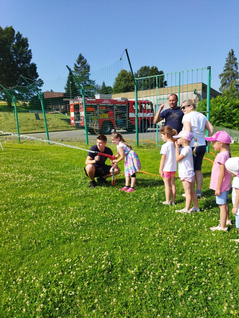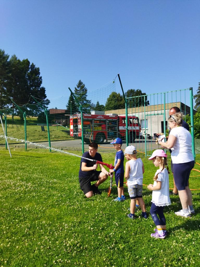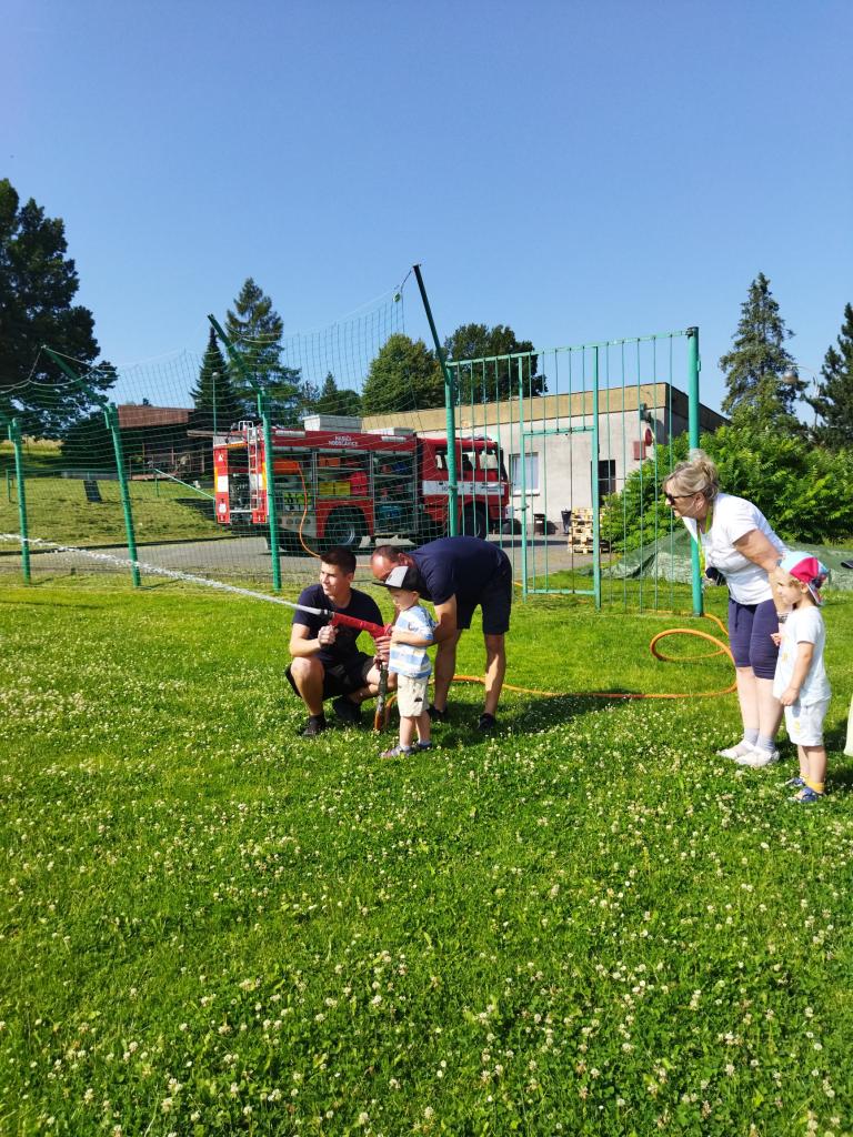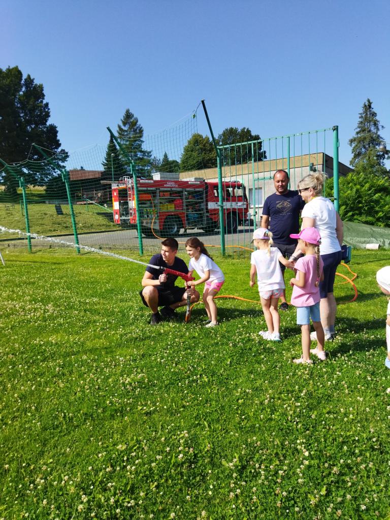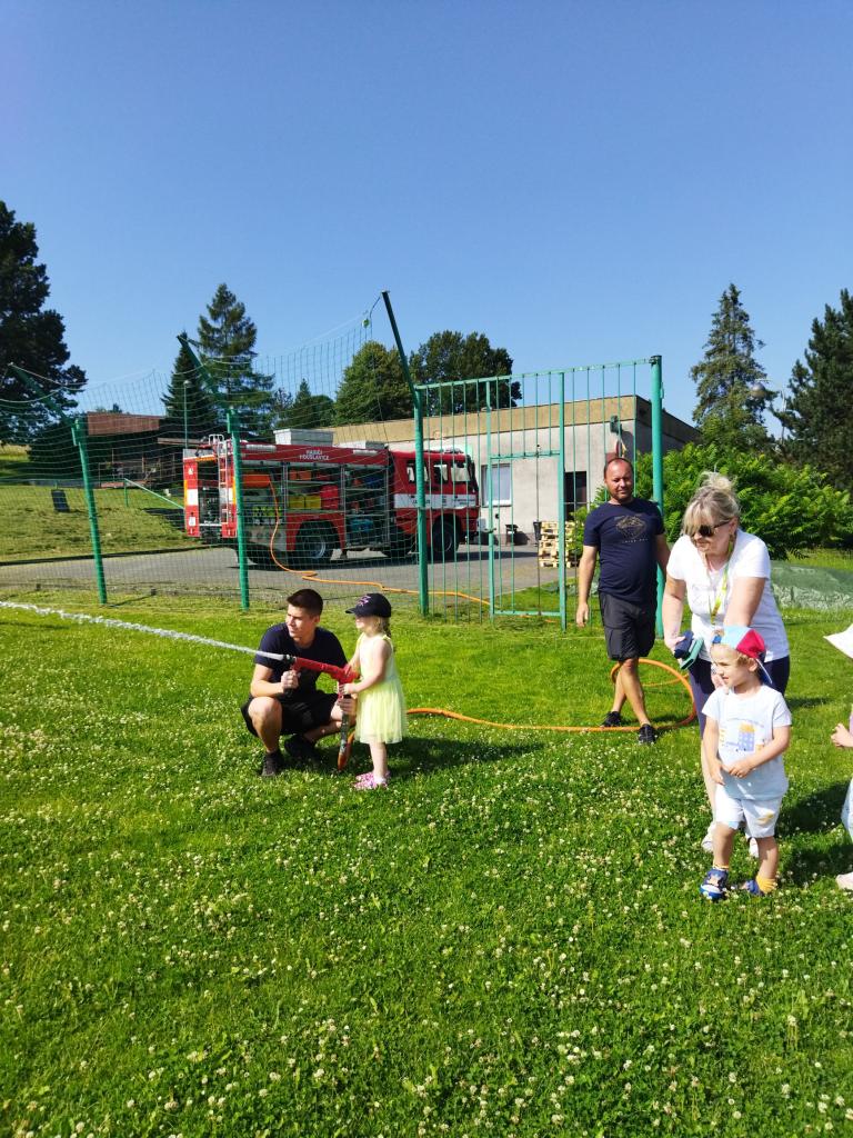 V úterý 25.6.2024 nás navštívil pan hasič s hasičským autem z Hodslavic. Děti seznámil s prací hasiče a vysvětlil a ukázal vybavení hasičského vozu. Na závěr si děti mohly vyzkoušet stříkat hadici a nesmělo chybět ani pokropení, které bylo v dnešních horkých dnech velmi příjemné.