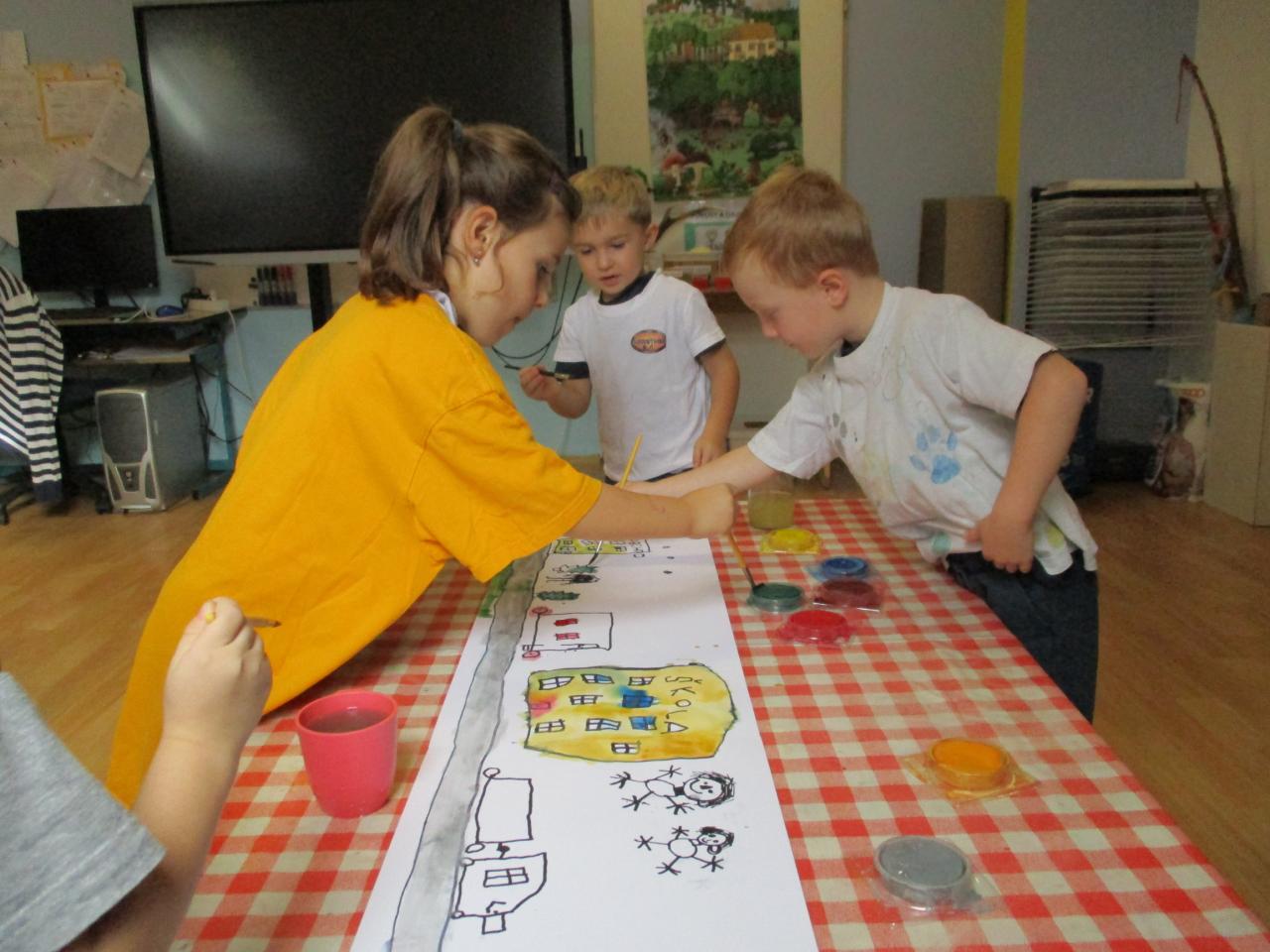 V tomto týdnu jsme si povídali o naší obci, při vycházkách jsme vyhledávali důležité budovy a domy, kde děti bydlí. Pozorovali jsme dopravní ruch i opravu silnice. Hráli jsme si s písmenky, počítali domy, zpívali o nich písničky. Hostašovice jsme si společně namalovali.