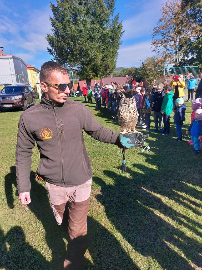 Naši mateřskou školu navštívili sokolníci s ukázkou dravců.