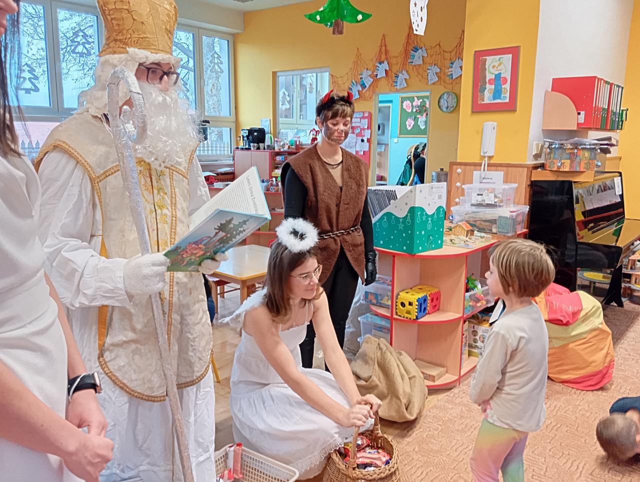 V pátek jsme přivítali studenty Gymnázia Nový Jičín s projektem Mikulášská nadílka .Děti se studenty tvořily, hrály divadlo, tancovaly a nakonec od Čerta , Mikuláše a Anděly dostaly i nějaké dobroty.