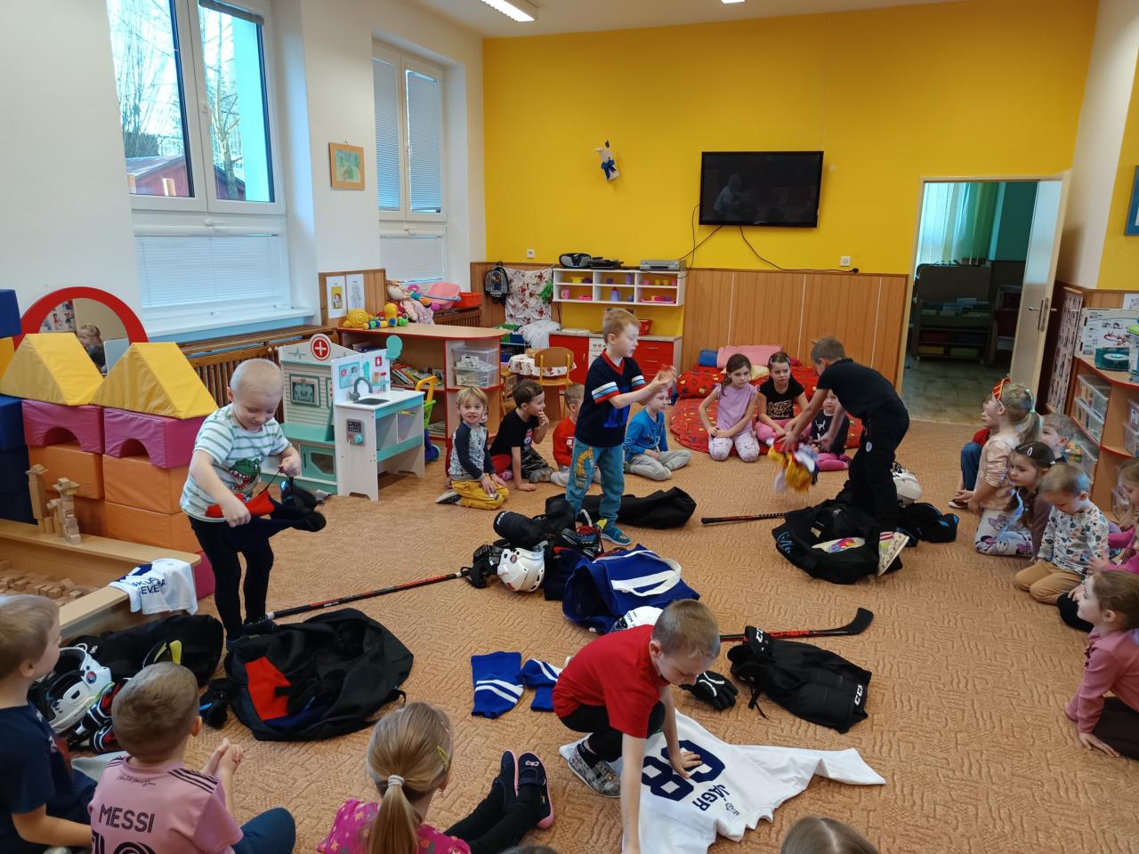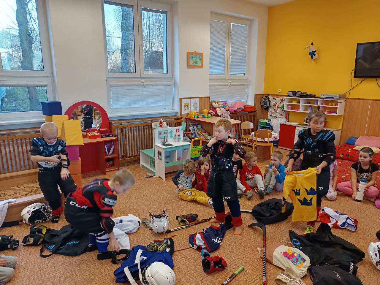 Návštěva hokejistů - kamarádi ze třídy Sluníček