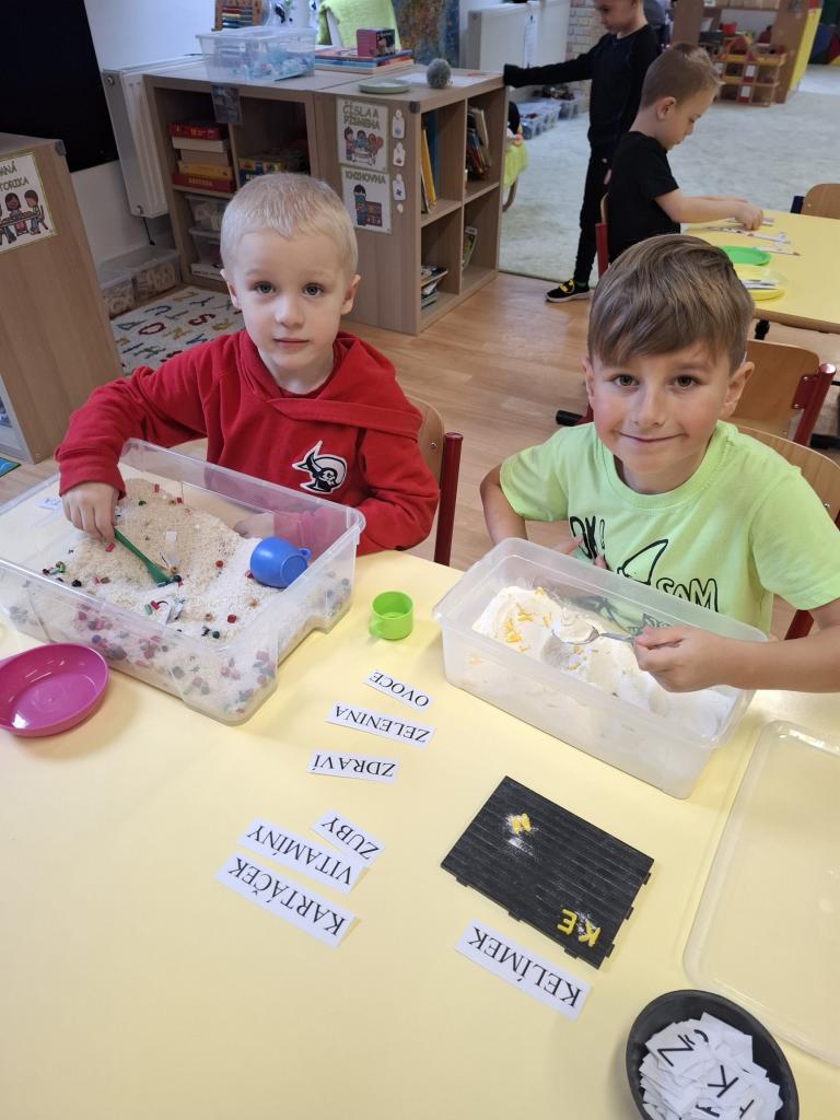 Děti povídaly, jaké znají vitamíny,kde je najdeme a proč jsou důležité pro naše zdraví. Společně jsme sestavili potravinovou pyramidu, která nám říká, jak často máme danou potravinu jíst.