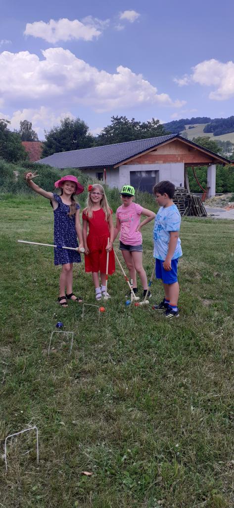 V letních parných dnech se schováváme pod stromy a hrajeme kriket.