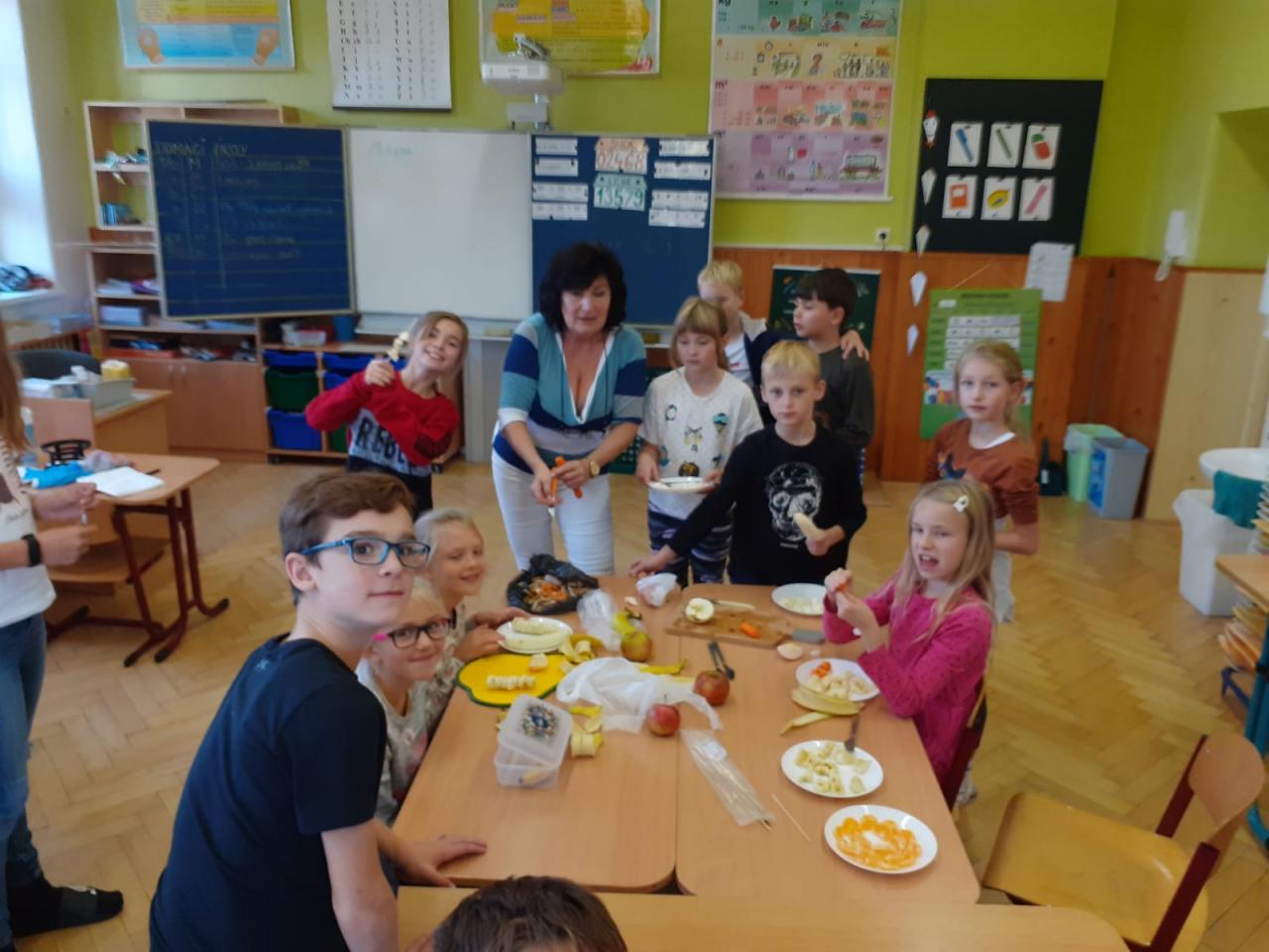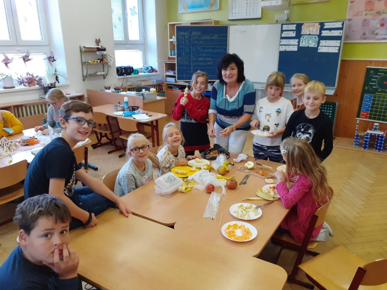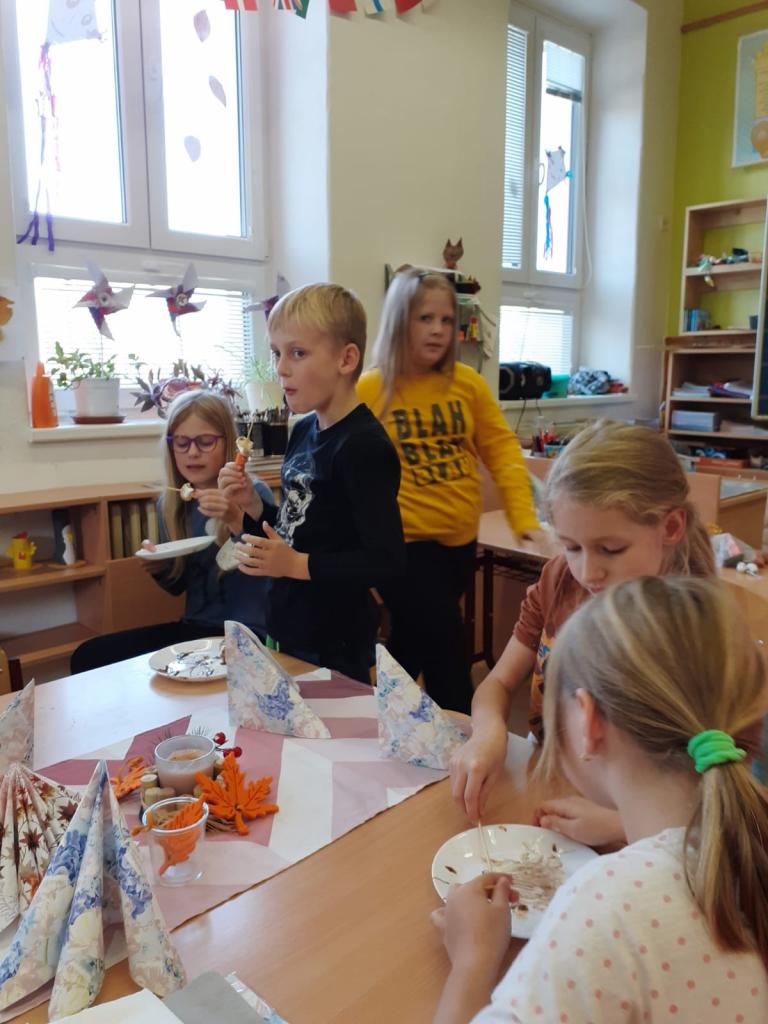 Čokoládovo - ovocné družinové odpoledne ve stylu FONDUE. Zkoušíme s žáky různé kombinace prostírání ubrousků a slavnostního stolování.