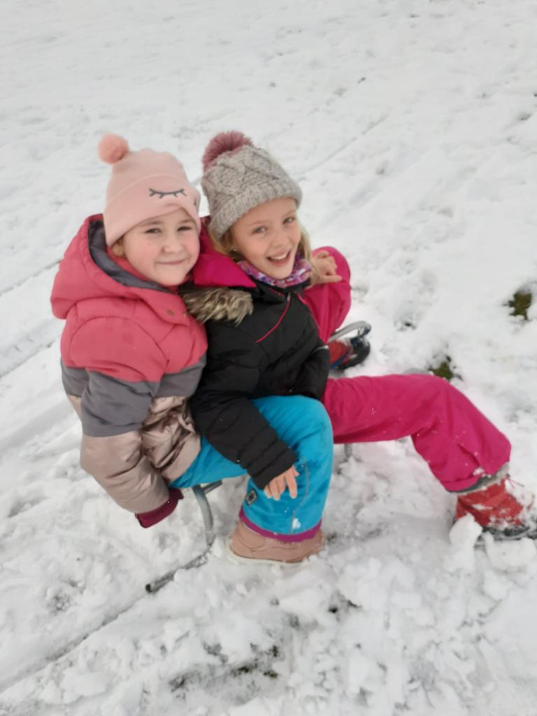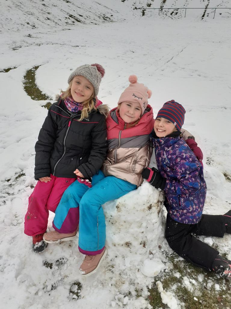 Využíváme zimní nadílky a radujeme se z trošky sněhu.
