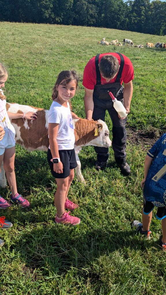Po rozdání úspěšných školních výsledků, jsme dostali jedinečnou šanci nakrmit a pomazlit se s telátkem u místních farmářů. Na tento úžasný zážitek budeme dlouho vzpomínat. Návštěvu jsme ukončili sladkou tečkou.