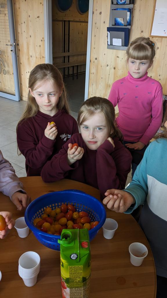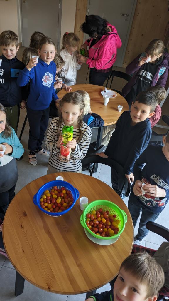 S dětmi jsme ochutnávali nejen několik druhů rajčátek, ale i hotové produkty vyrobené z rajčat. Z těch nejchutnějších rajčátek jsme si schovali semínka, která zkusíme zasadit do truhlíků, abychom měli na léto zdravé mlsání.