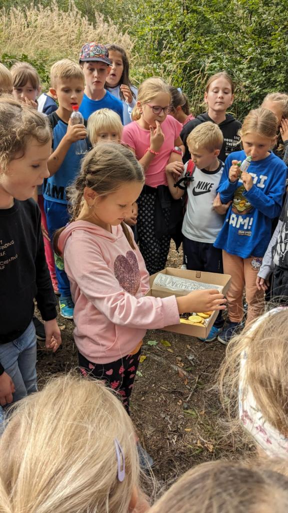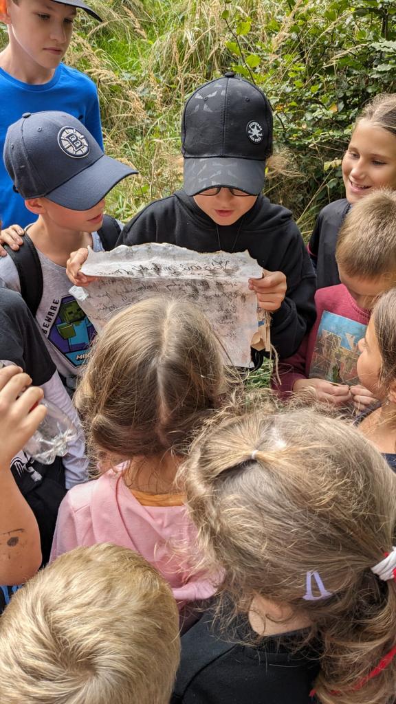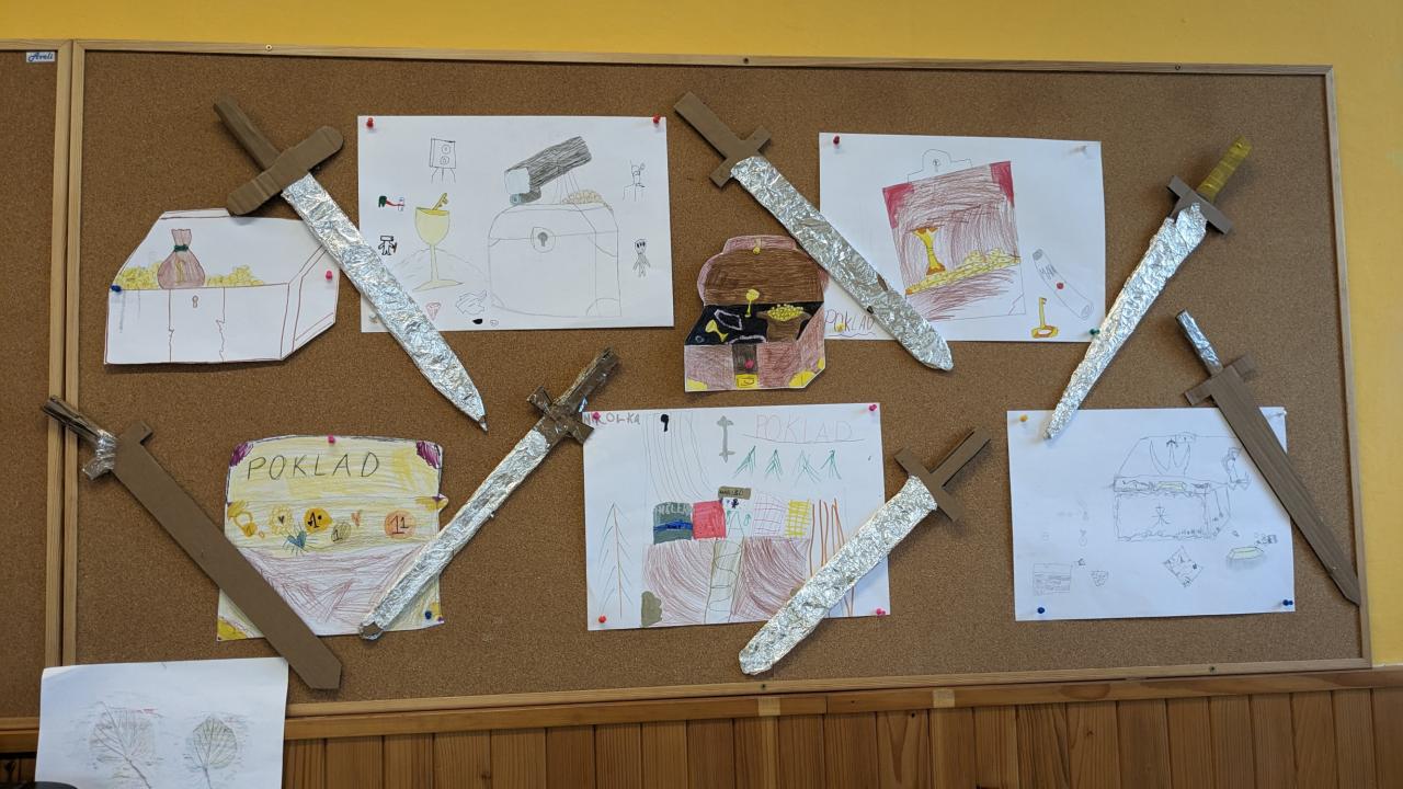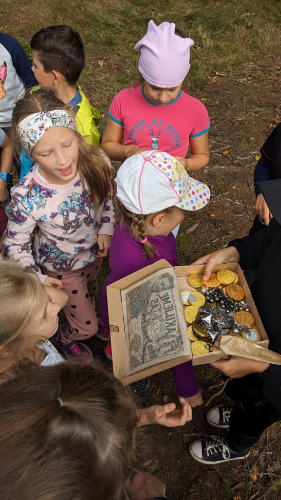 V pondělí dne 25. 9 jsme se s dětmi ze ŠD vypravili k pramenům Zrzávky. Cestou děti plnily úkoly, které lze zařadit k dovednostem rytíře. Vyvrcholením výpravy bylo hledání pokladu. Děti měly z nalezeného pokladu ve formě zlatých mincí a šperků velkou radost a celé odpoledne si náramně užily.