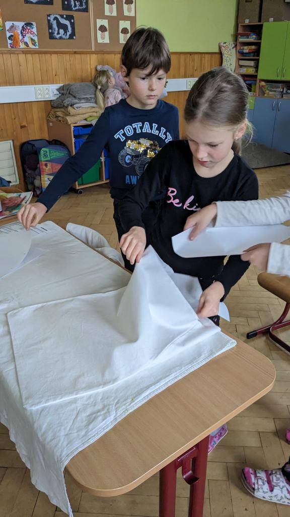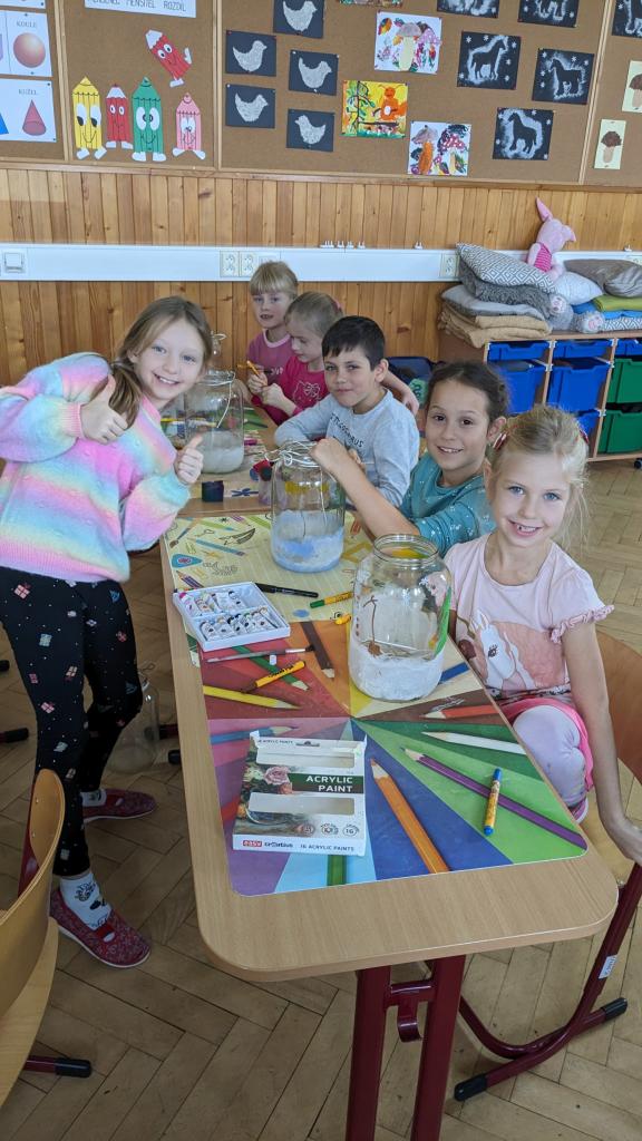S dětmi tvoříme výrobky na vánoční jarmark. Hrajeme si s fantazií a šikovností dětí. Chválíme děti za jejich nápady a kreativitu.