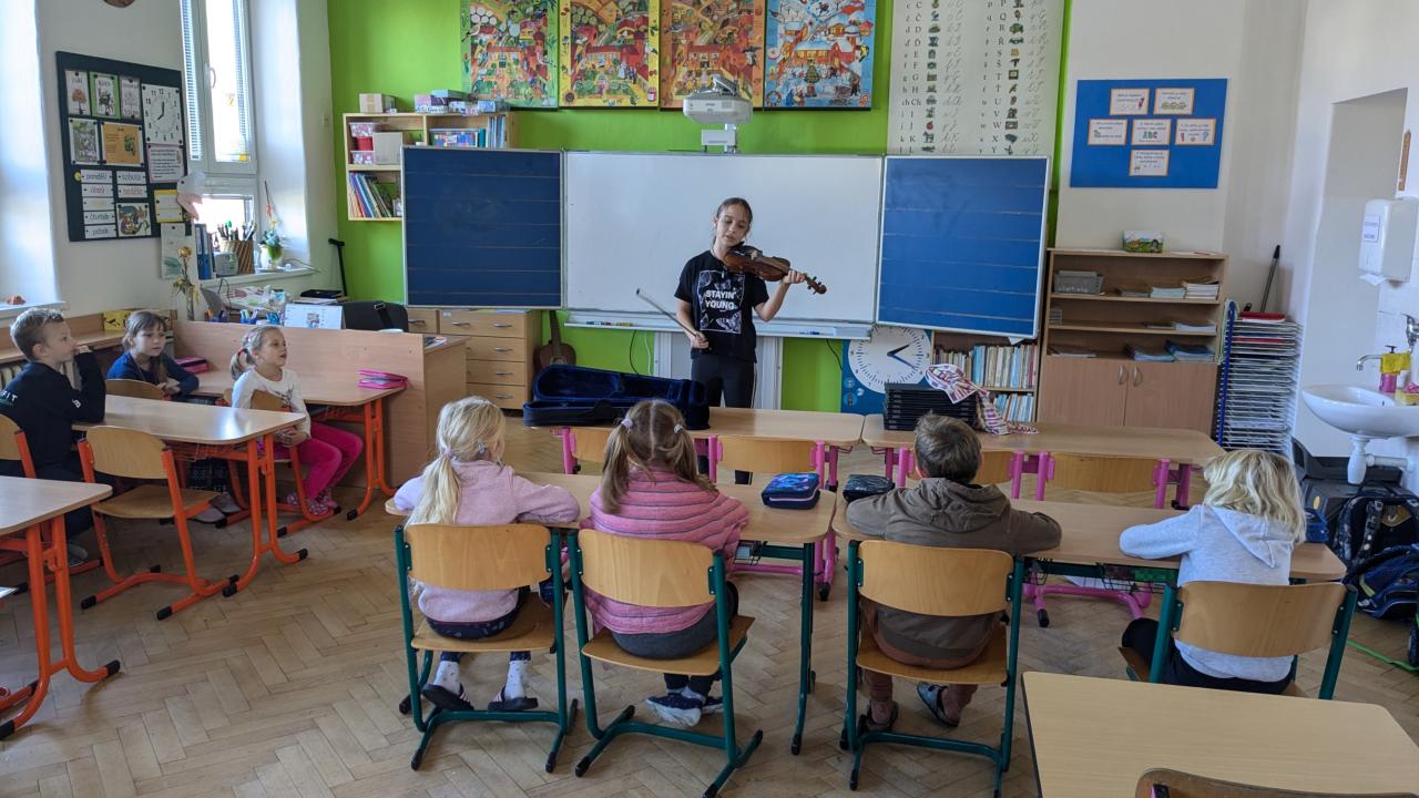 Odpoledne ve školní družině nám přišla zpříjemnit naše žákyně Lucka, která nám předvedla svůj oblíbený hudební nástroj. Na své vzácné housličky nám zahrála písničku, kterou jsme si za jejího hudebního doprovodu zazpívali. Moc jí za tuto malou přednášku děkujeme a přejeme jí hodně hudebního štěstí.
