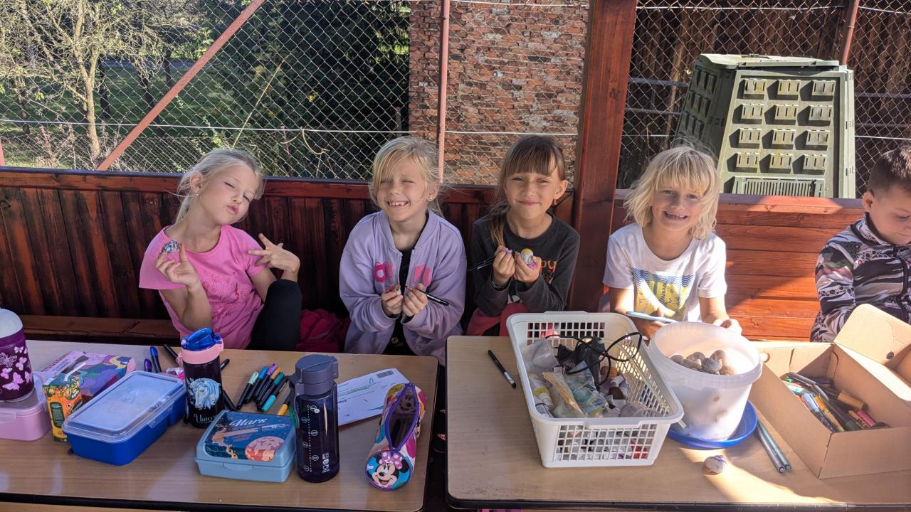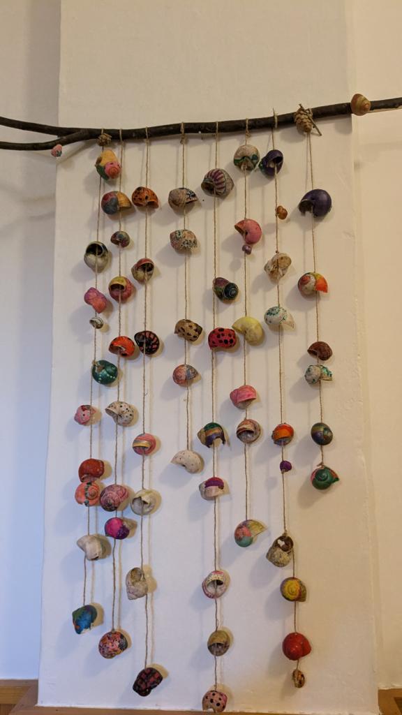 S dětmi v družině si ukazujeme jak využít různé přírodniny k tvoření a tím chránit naše životní prostředí. Tentokrát jsme si našli šnečí ulity a vytvořili jsme si zvonkohru, která zdobí naší školu.