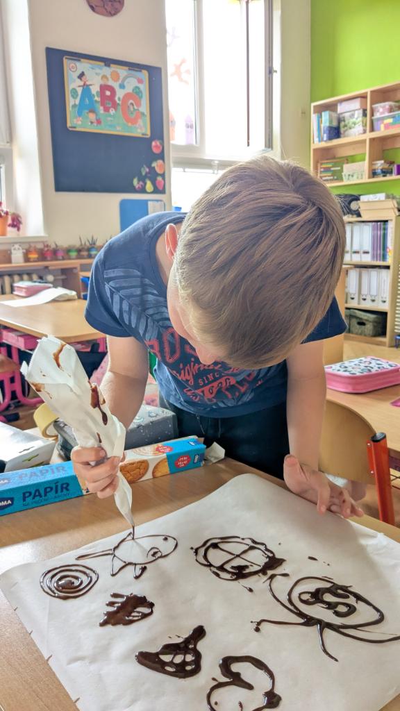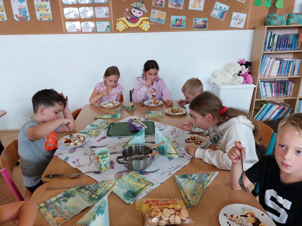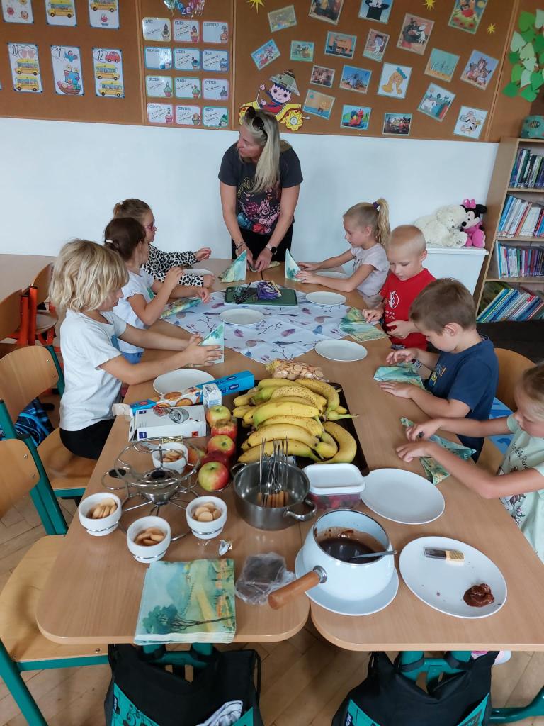13.září se slaví Mezinárodní den čokolády, a proto jsme se rozhodli tento sladký svátek oslavit i v naší družině. Nejprve jsme si zatancovali čokoládový tanec a následně se vrhli do čokoládového fondue. Nezdravou složku v podobě bílé a klasické čokolády jsme vyvážili zdravým ovocem.