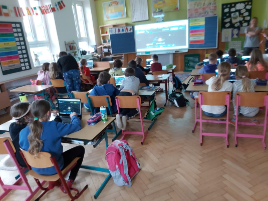 Během projektového dne na žáky čekalo nejen povídání o Sluneční soustavě, promítání mobilního planetária a modelování pohybu vesmírných těles v počítačovém programu, ale vyhledávání modelů planet v okolí školy a také získávání informací o těchto planetách.