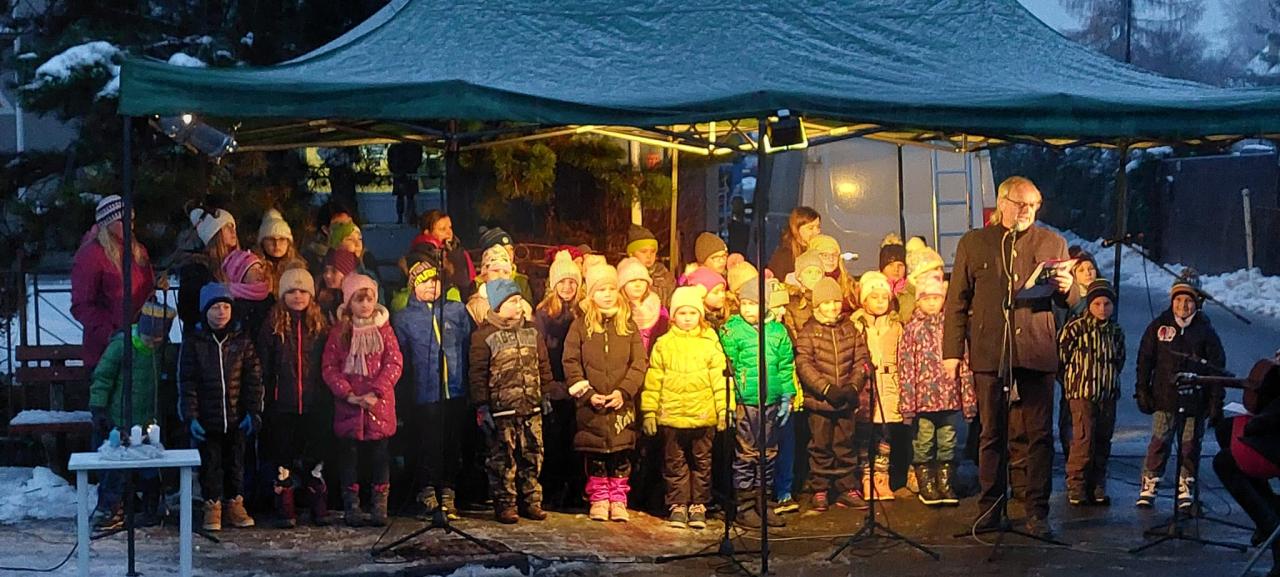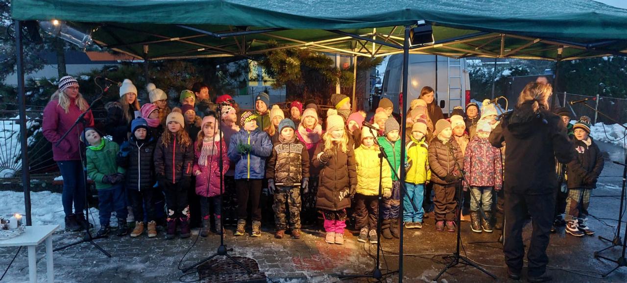 Naši žáci vystoupili s vánočním programem, kde zpívali a recitovali. Mohli jsme slyšet adventní příběh, který byl proložen vánočními koledami jako např. "Rychle bratři", "Na nebesích nad Betlémem", "Tichá noc". Celé pásmo bylo zakončeno příběhem O čtyřech svíčkách. Žáci nám tímto vystoupením krásně zpříjemnili začátek adventu.