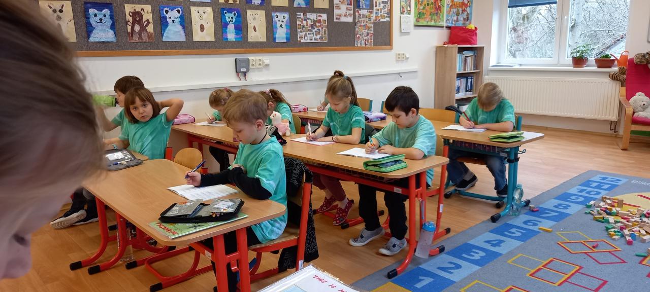 V úterý 21. února jsme slavnostně završili naše společné batikování z pracovních činností. Žáci celou výuku strávili v nových batikovaných tričkách, které budeme využívat při všech společných akcích. Tento rok nám vyšla barva zelená.