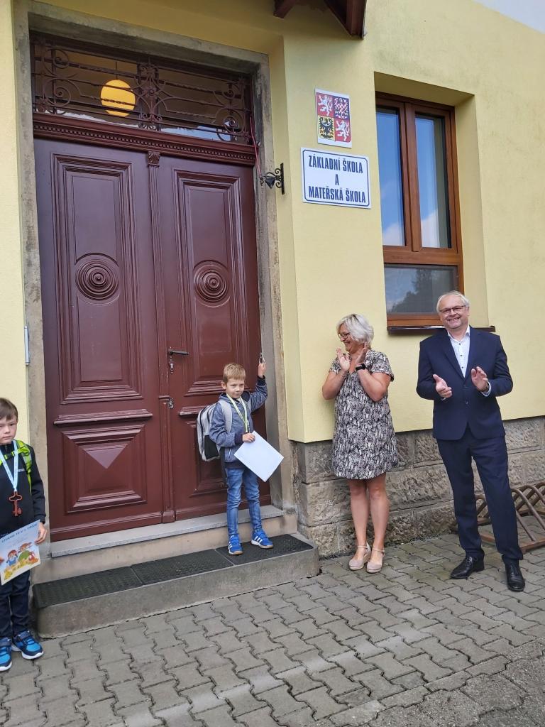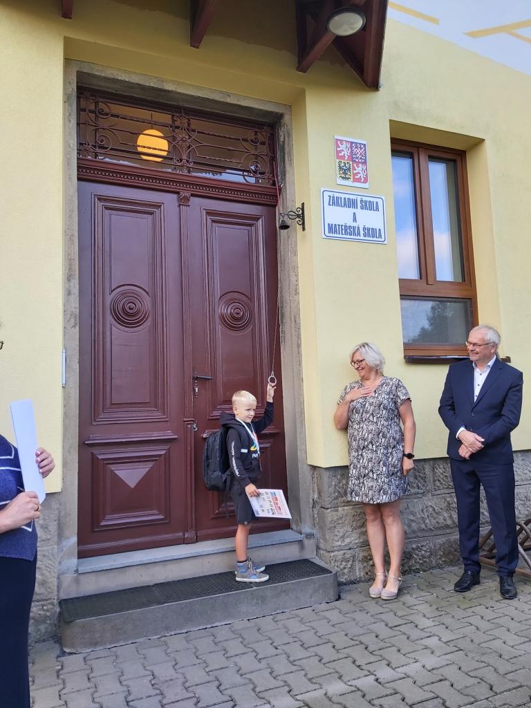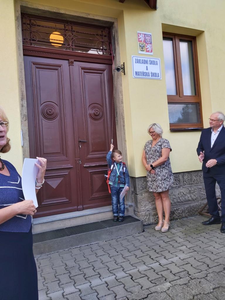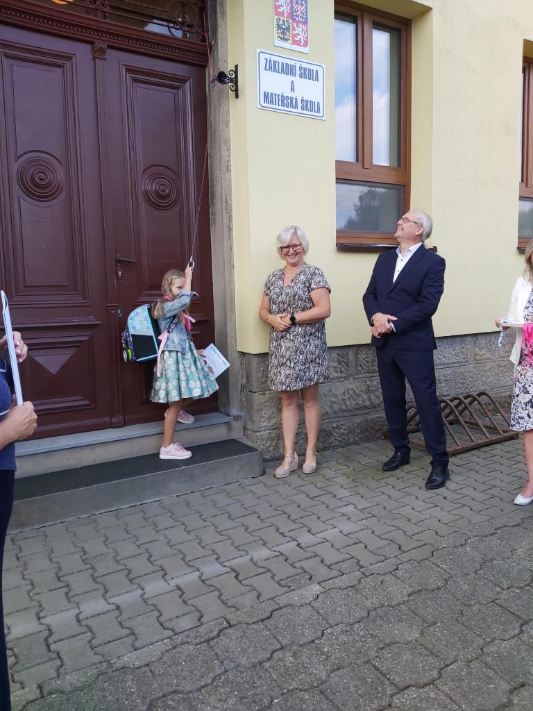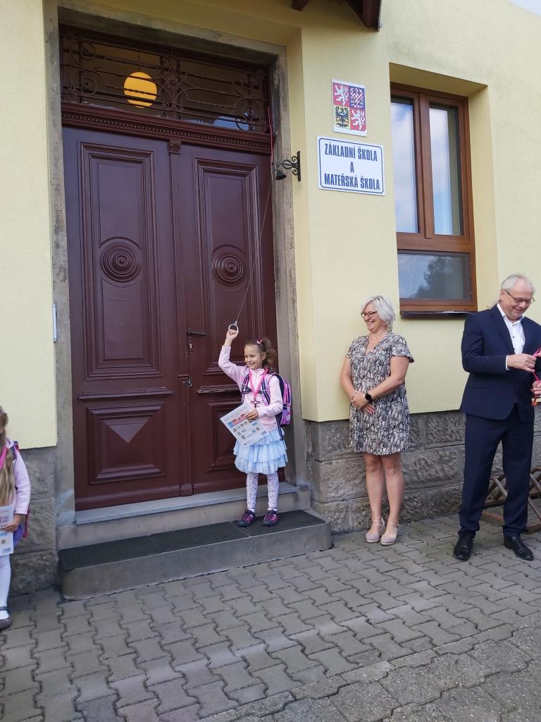 Děti byly slavnostně přivítány panem starostou a paní ředitelkou. Poté co slíbily, že se budou pilně učit, mohly zazvonit na zvoneček. Zároveň dostaly kouzelný klíč od školy a tím se staly žáky prvního ročníku.
