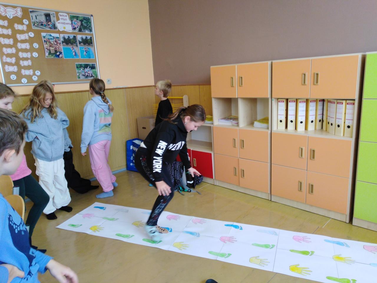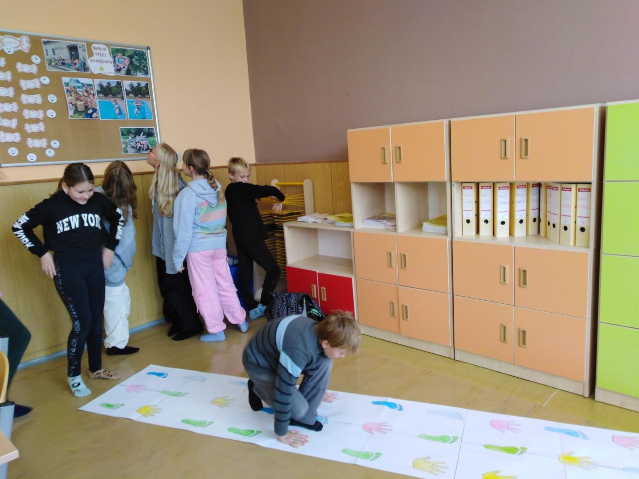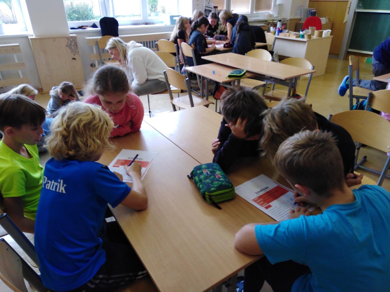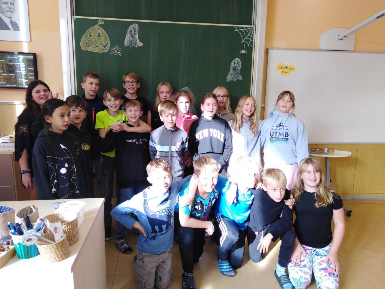 V úterý 24.10. nás žáci pátého ročníku v Hodslavicích pozvali k sobě do výuky. Přivítali nás sladkým překvapením a společnou hrou na seznámení. Pak jsme si zkusili spolupráci při běhacím diktátu a dýňovém počítání. Nakonec jsme si zaskákali, společně se vyfotili a běželi na autobus.