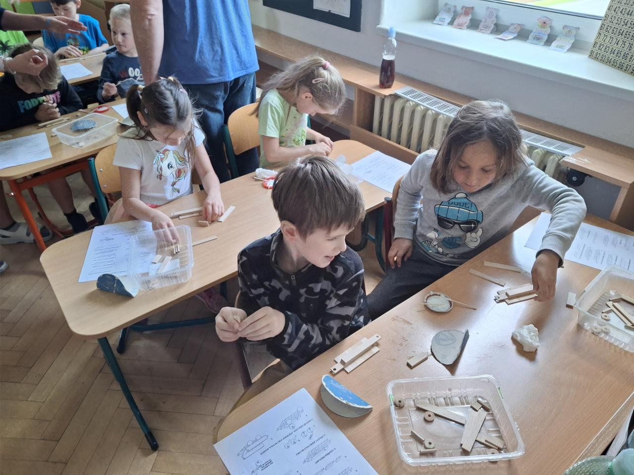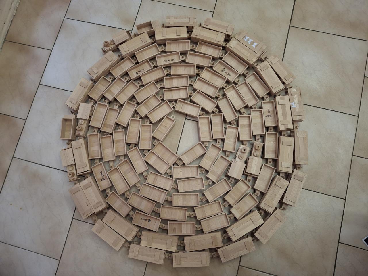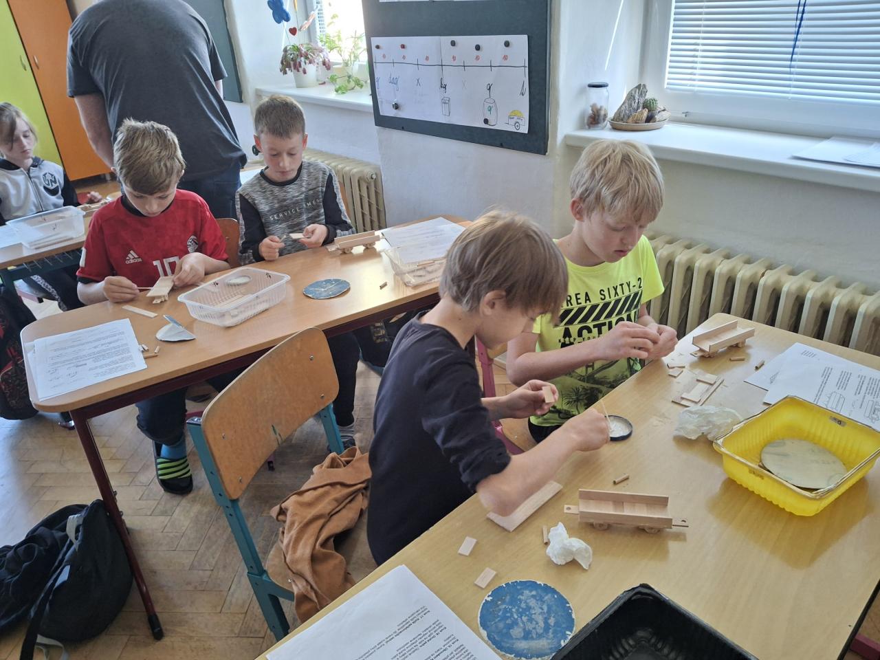 Ve dnech 2. a 9. května se naše děti přidaly k celorepublikovému projektu Nekonečný vláček. Každý žák vyrobil samostatně podle připraveného plánku vagónek, který se pak připojil k dalším a vzniká tak nekonečně dlouhý vlak, který nemá konce.