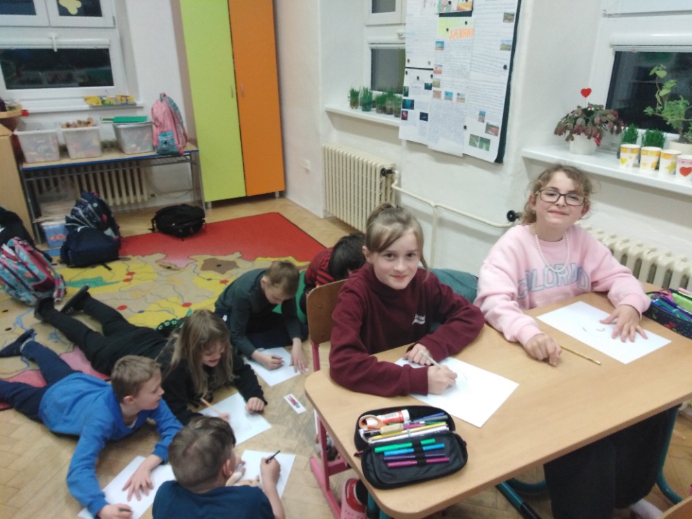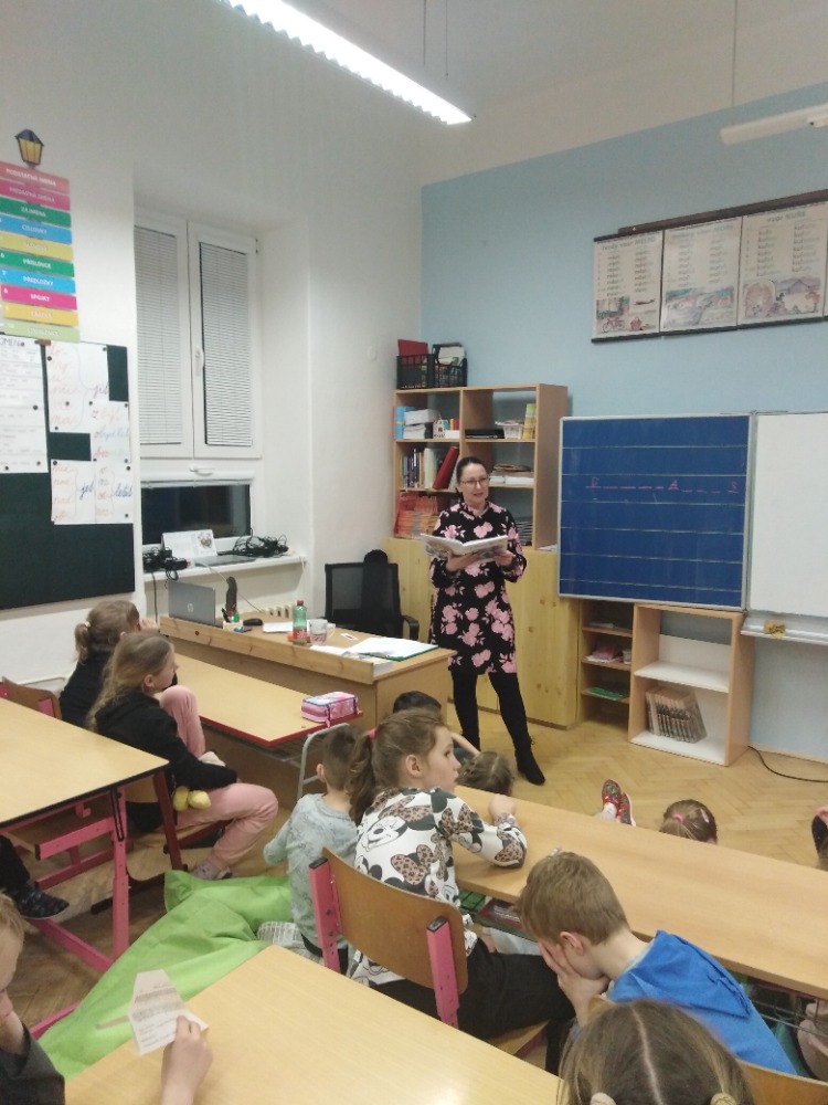 Konečně je tady - naše oblíbená akce Noc s Andersenem.Letos nás navštívila paní spisovatelka Ester Davidová.Společně jsme si popovídali o její knížce Kiliánovo tajemství, nakreslili jsme nádherné obrázky, naplnili bříška pizzou, zazpívali jsme si písničky a nakonec jsme se unavili večerní vycházkou.