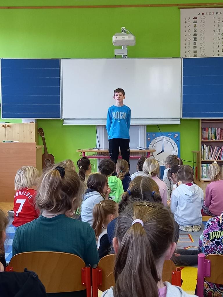 I v letošním roce proběhlo školní kolo recitační soutěže. Žáci si sami připravili básničky a velmi mile nás překvapili svým procítěným přednesem. Mnohé přednesy byly opravdu obdivuhodné a porota měla těžký úkol. Ti nejlepší byli oceněni knihou a zaslouženým potleskem. Gratulujeme všem!!!