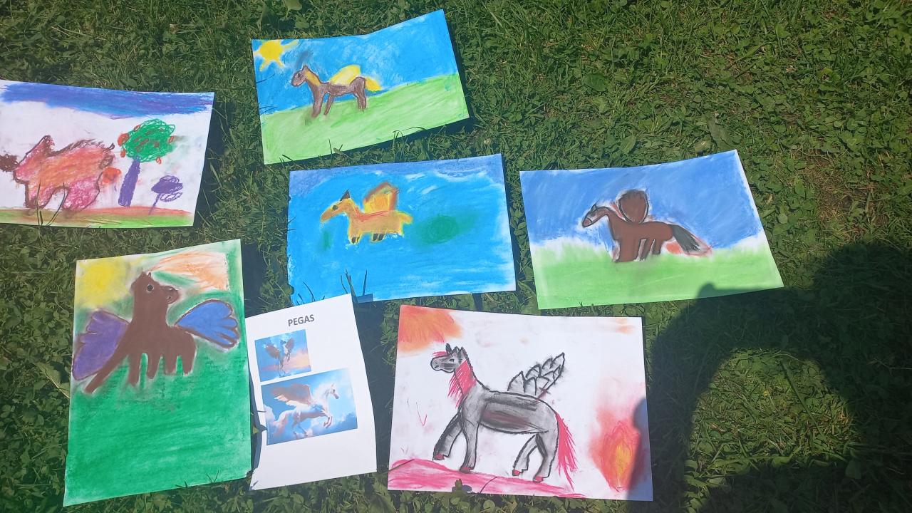 Po stopách řeckých bohů - 19.06.2024 Dopoledne - kresba mýtických postav a plnění úkolů Odpoledne - vodní radovánky a výroba svého řeckého boha z přírodnin a Hobby horse