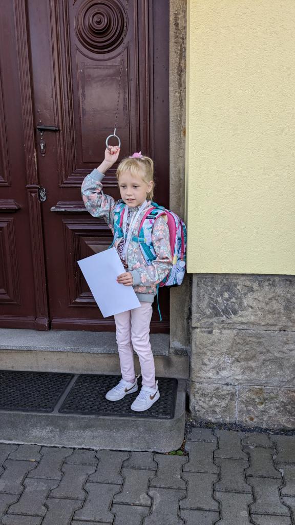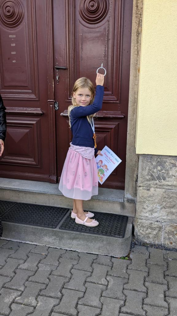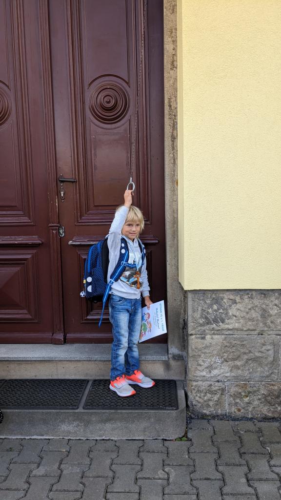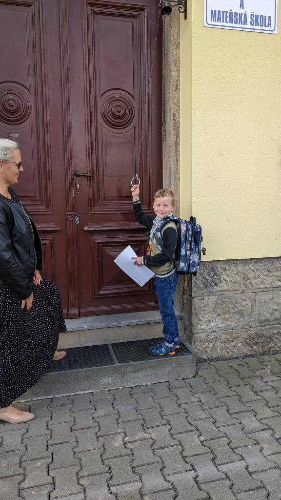 V pondělí 4. září jsme přivítali naše nové prvňáčky do nového školního roku. Každý žáček prvňáček dostal svůj "klíč" od školy a zazvonil si na zvoneček u dveří a pak už hurááá do lavic :-)