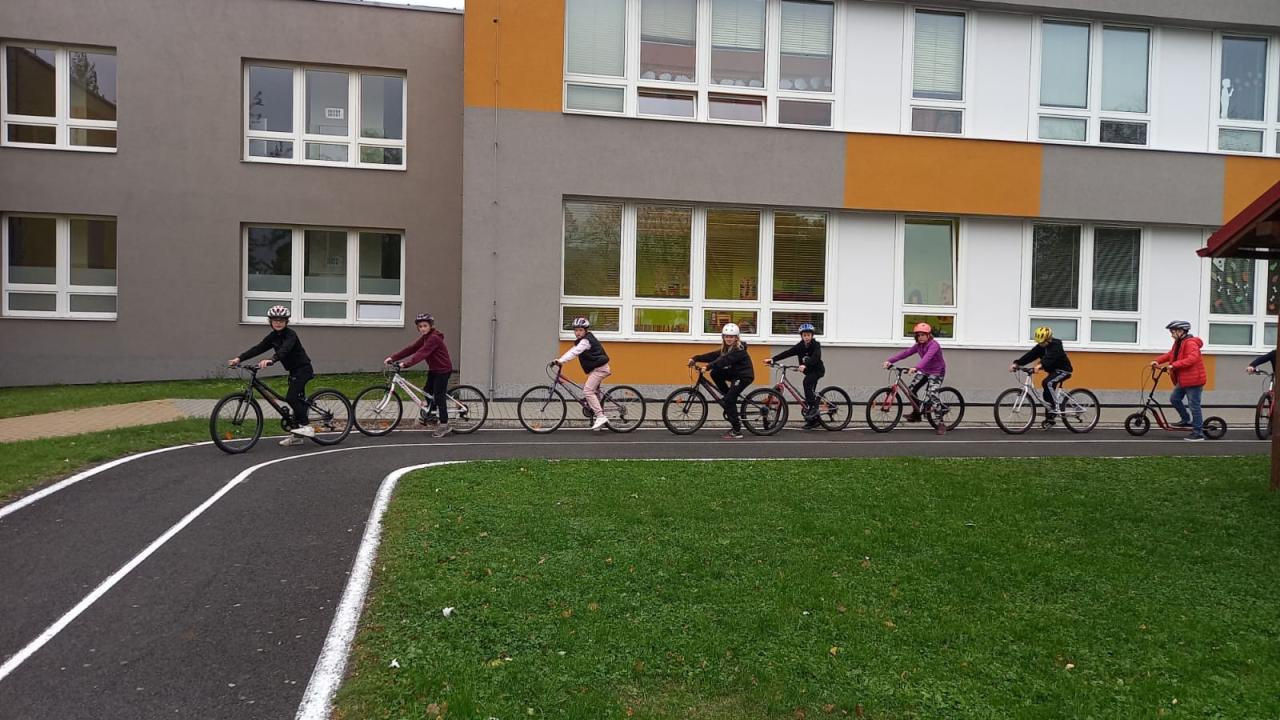 Žáci 4. ročníku vyrazili na dopravní hřiště do Nového Jičína procvičit pravidla provozu a zručnost jízdy na kole.